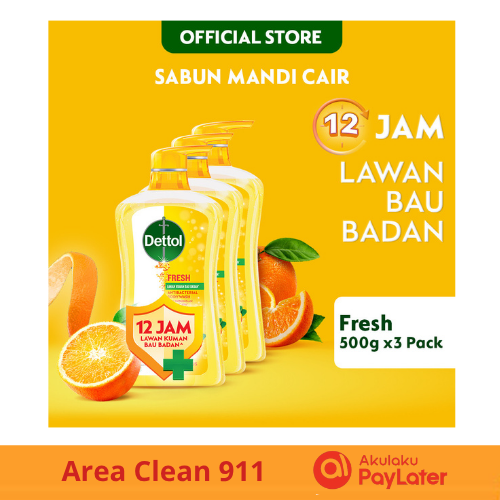 [ 3 Pcs ] Sabun Mandi Cair Body Wash Dettol Fresh Anti Bakteri Pump 500gr x 3