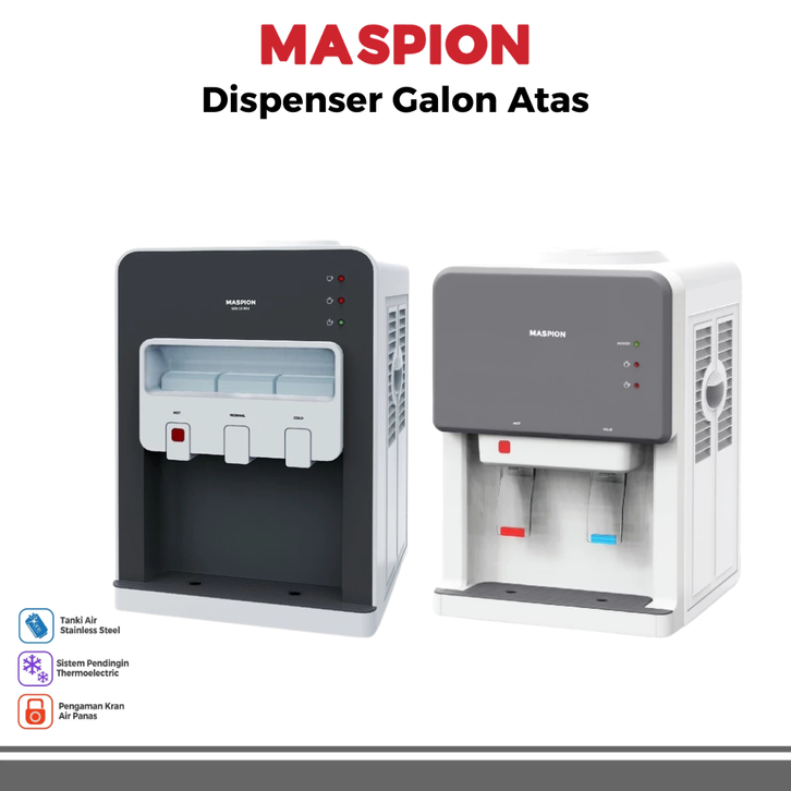 DISPENSER GALON ATAS MASPION PORTABLE HOT NORMAL COLD MD19 PAS THERMOELECTRIC AIR PANAS DINGIN ES GARANSI RESMI MURAH