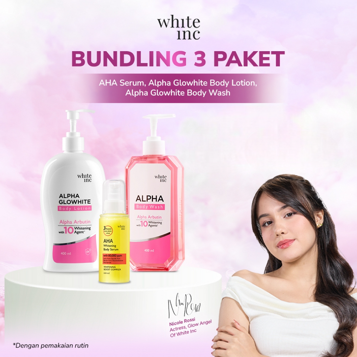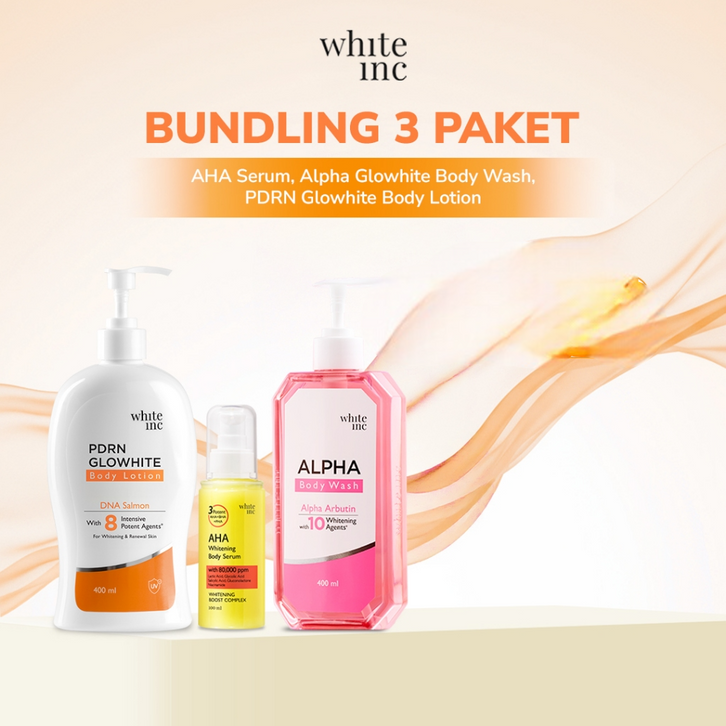PAKET BUNDLING 3 BODY LOTION PEMUTIH BADAN WHITE INCH ALPHA GLOWHITE PDRN GLUCOWHITE TRANEXHYA BODY LOTION + AHA BODY