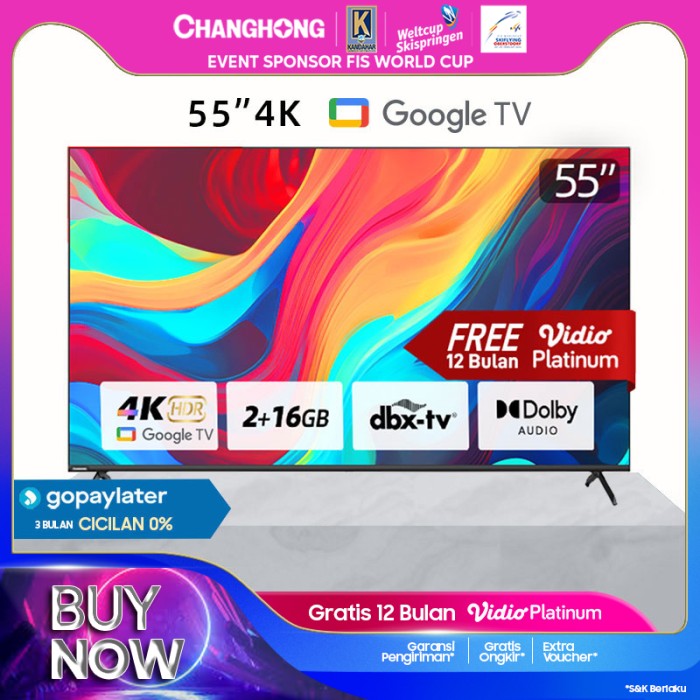 Google TV Changhong 55 inch Smart TV 4K UHD-HDR10+DBX Dolby Audio Google Assistant Netflix Youtube Digital TV (U55G7N Pr