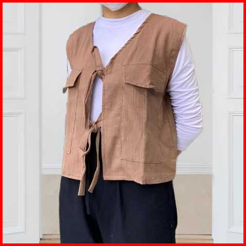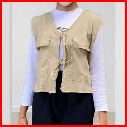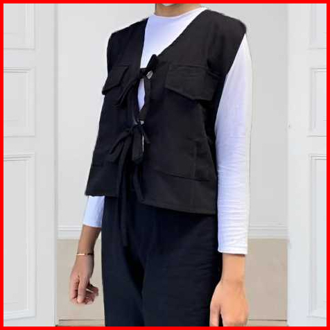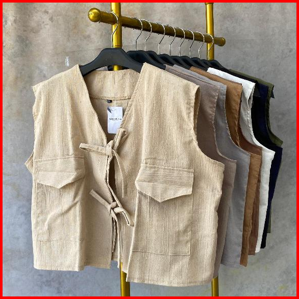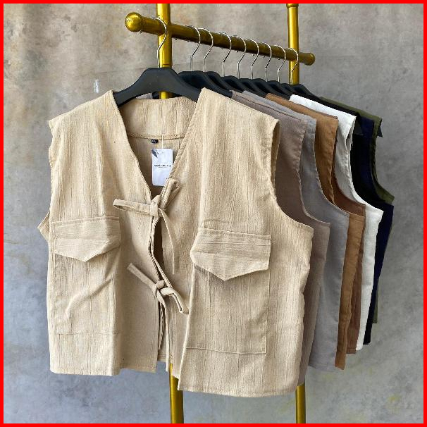 Rompi Wanita Vest Wanita Rompi Pocket Atasan Wanita Size M L Xl Xxl Jumbo Tali Variasi Bahan Linen Reyna Vest