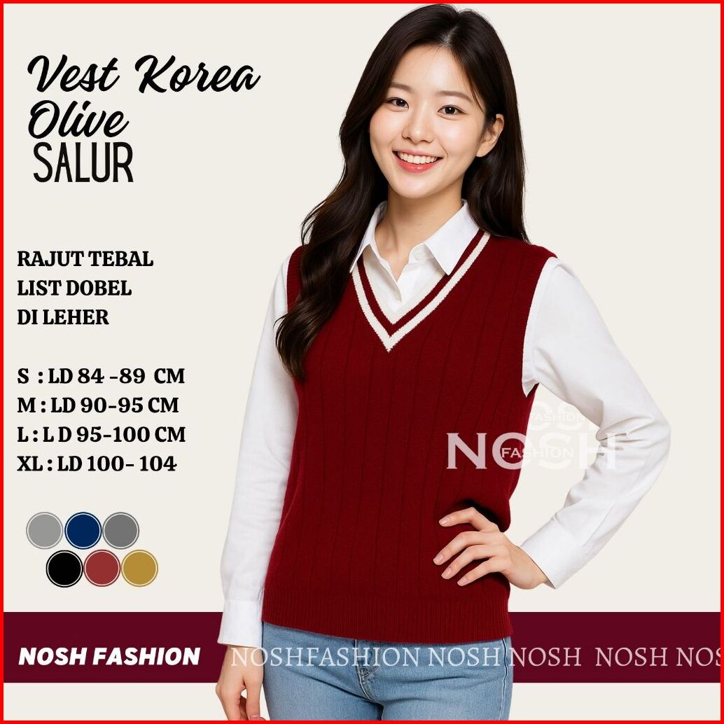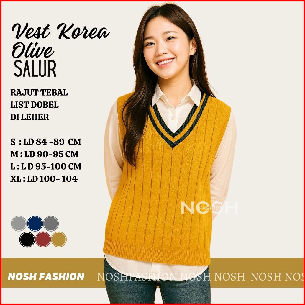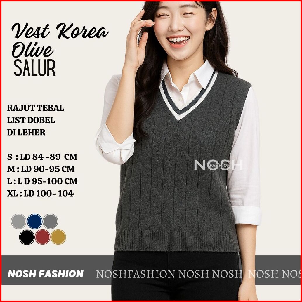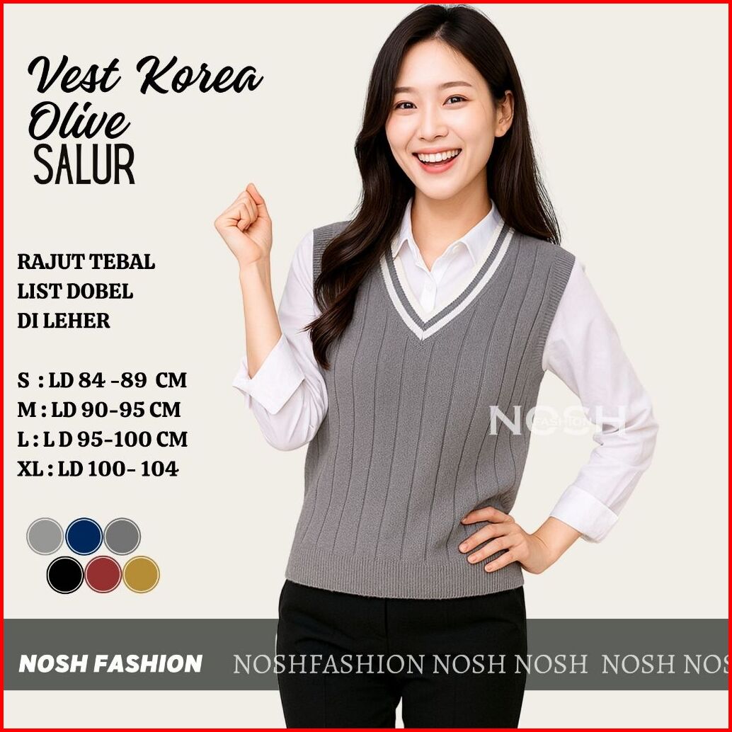Rompi Rajut Wanita Korea Look V-neck Vest Kantor Unisex Salur Olivia Sweater Rompi Wanita - Nosh Fashion