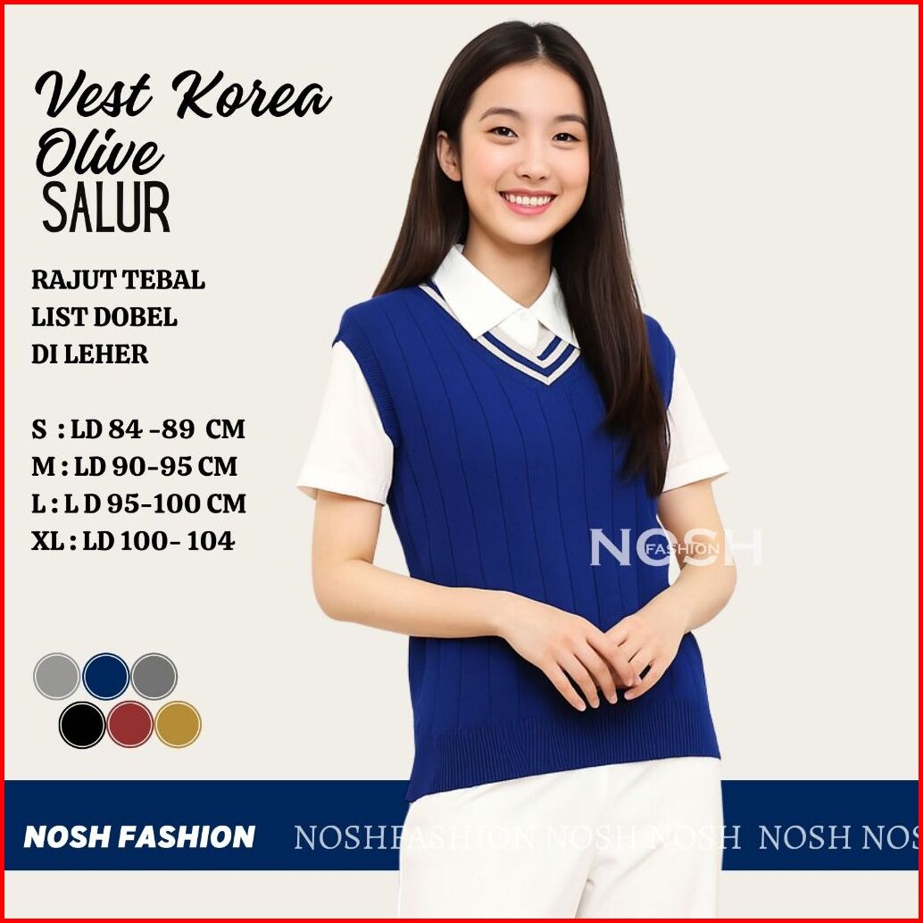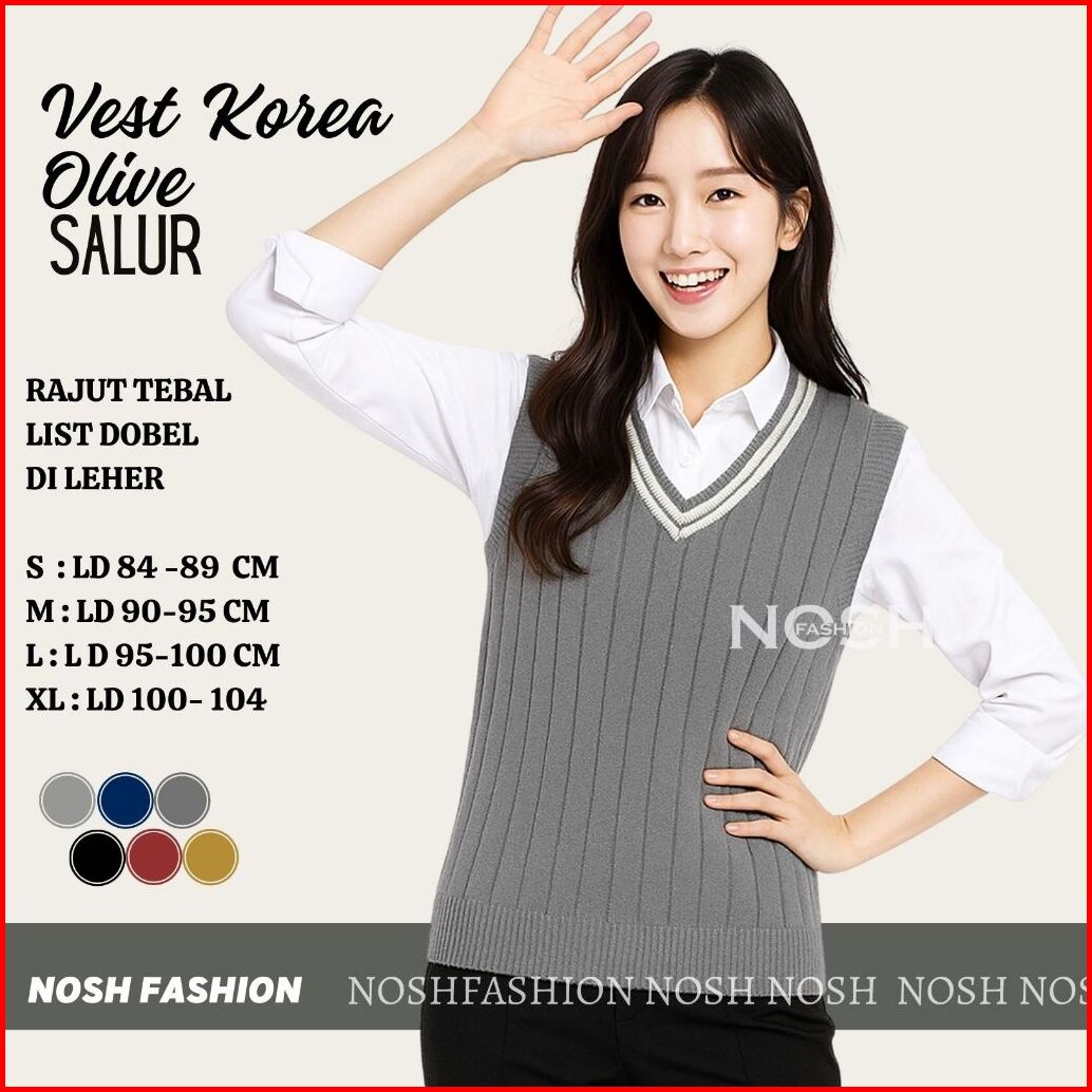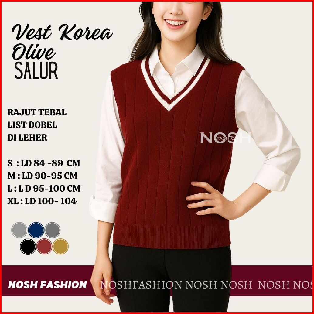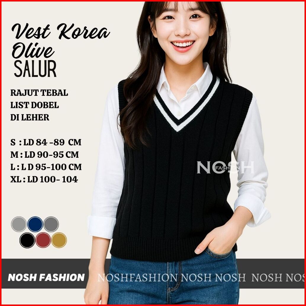 Rompi Rajut Wanita Korea Look V-neck Vest Kantor Unisex Salur Olivia Sweater Rompi Wanita - Nosh Fashion
