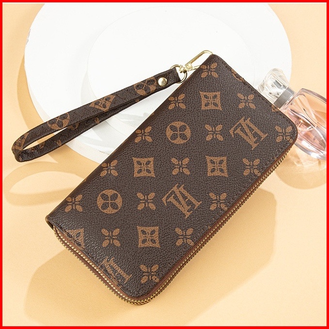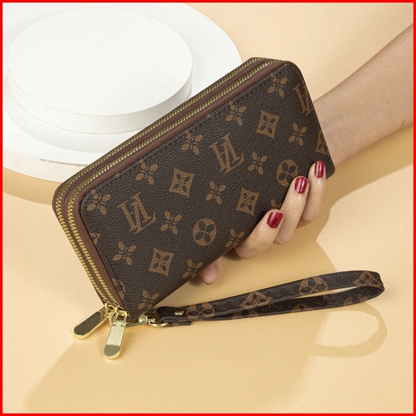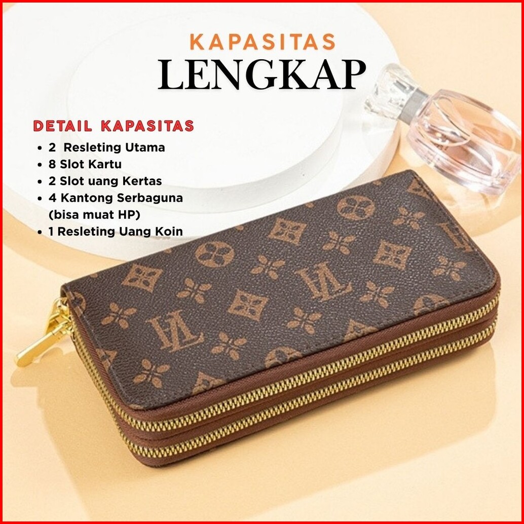 Dompet Panjang Wanita 2 Resleting Premium Kulit Coklat Candy Wa446b7 Branded Cewek Slot Kartu Uang Besar Muat Hp Korea R