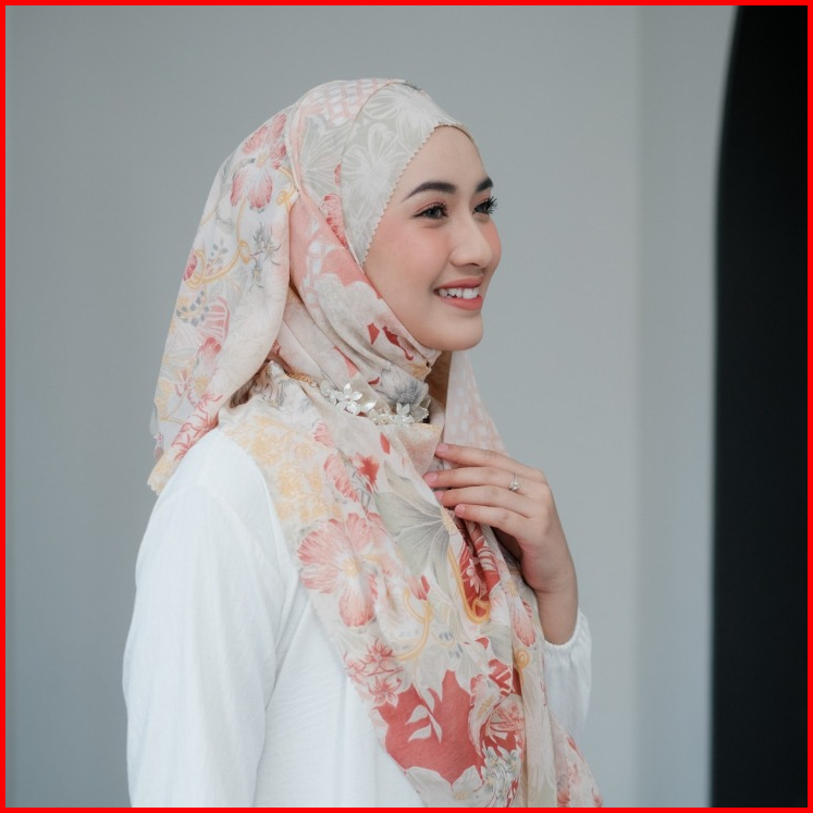 Harraku Hijab Voal Printing Segiempat Motif Magnolia Pink