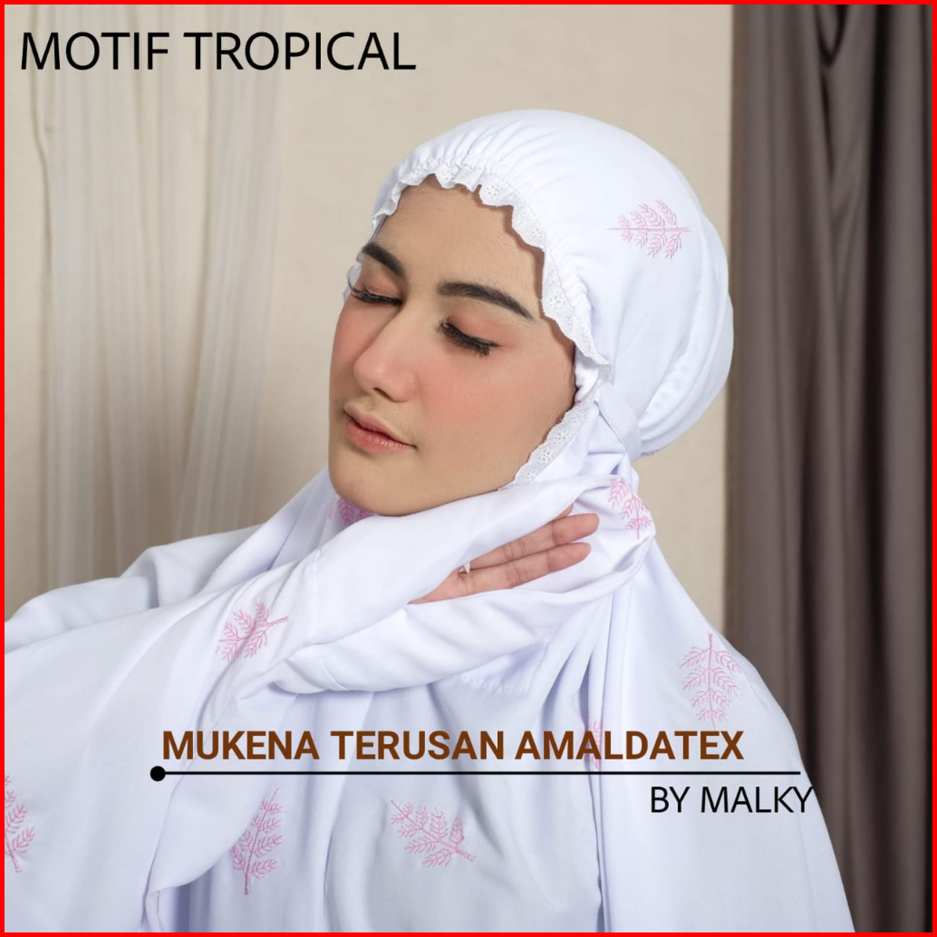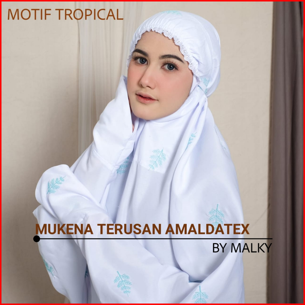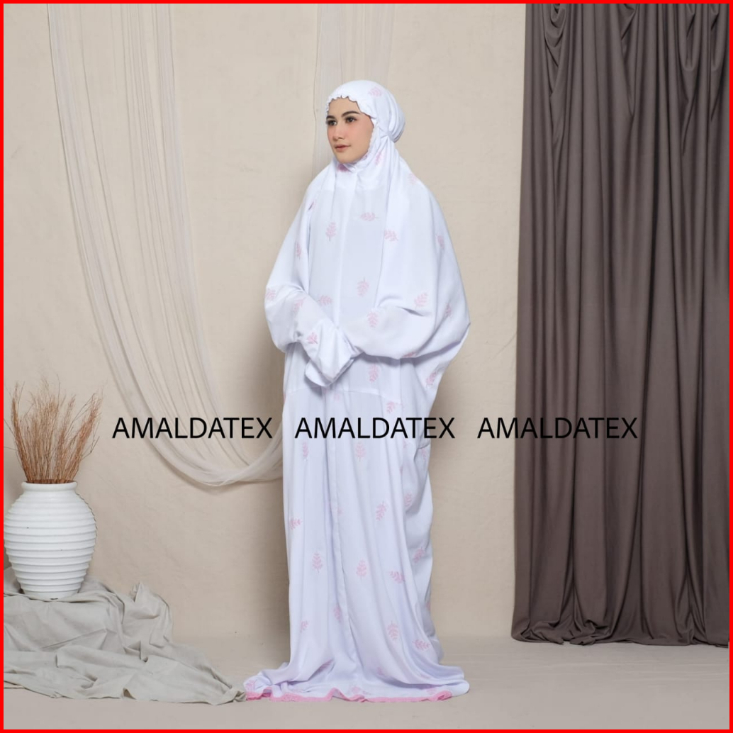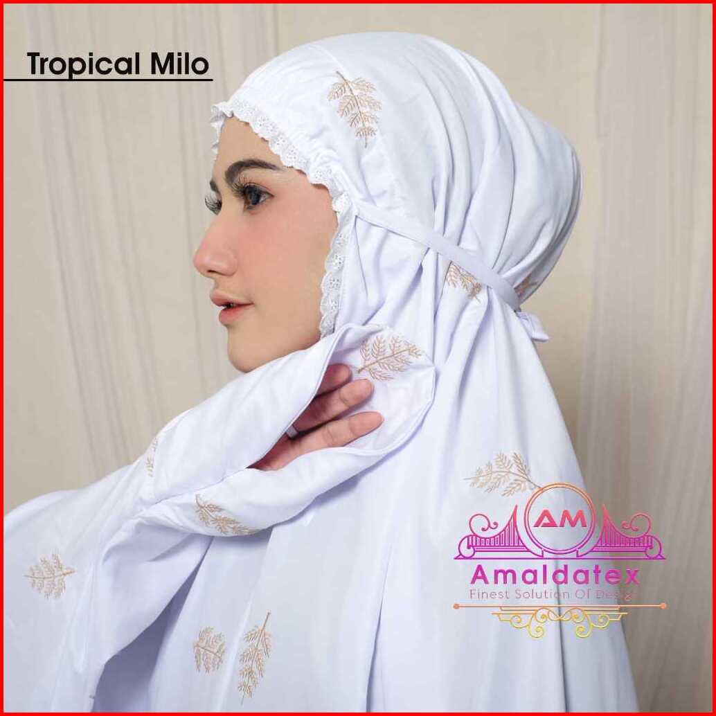 Mukena Terusan Lajuran Tropical Katun Micro Murah Warna Putih Milo
