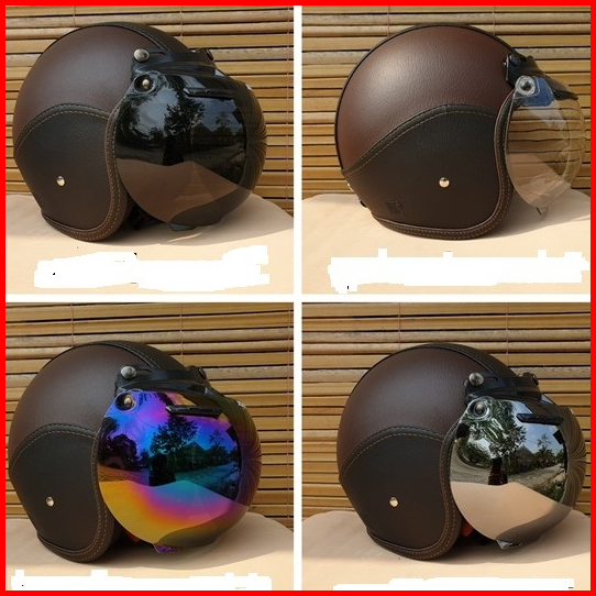 Bogo Helm Boggo Classic Glossy Sni Dewasa Pria Dan Wanita Helmet Retro Klasik Leather Sintetis Kaca Datar Cembung Warna