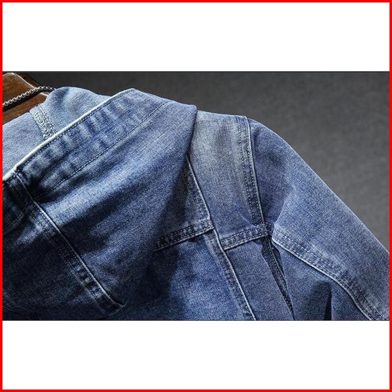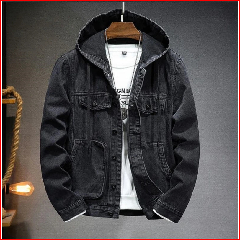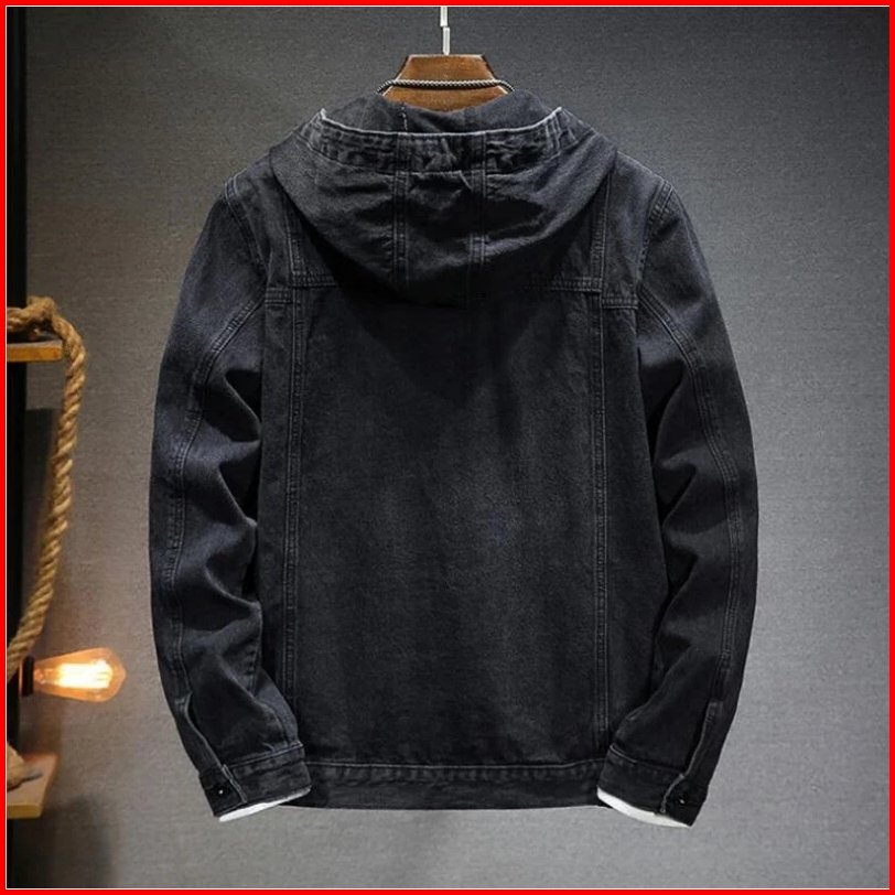 Jaket Jeans Denim Bertudung Jaket Denim Kupluk Sandwash Hitam