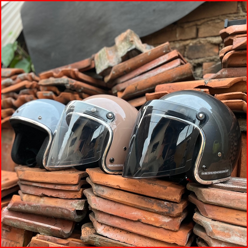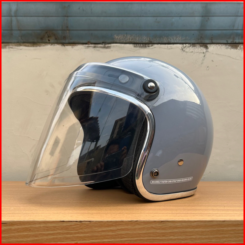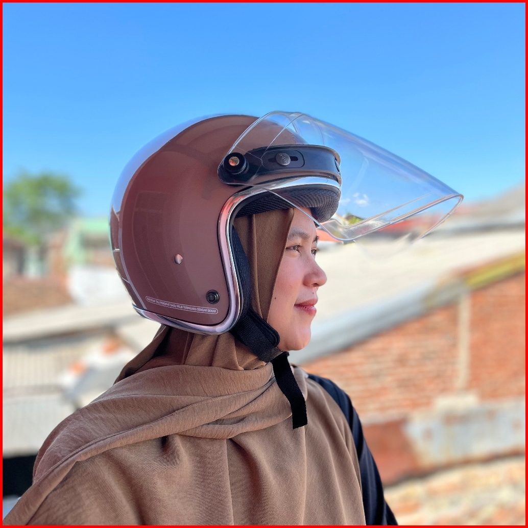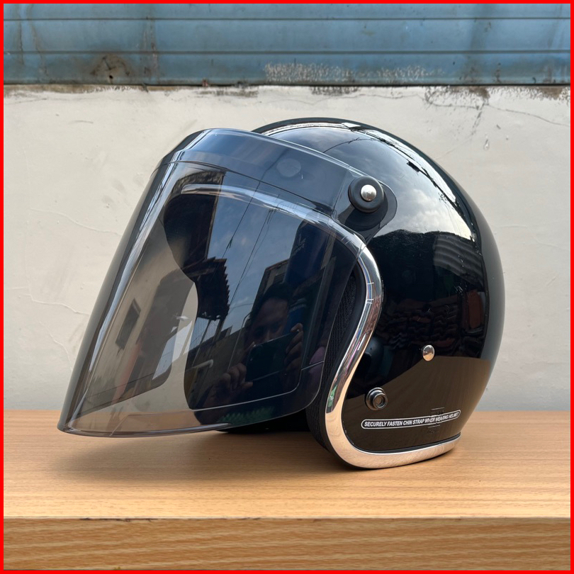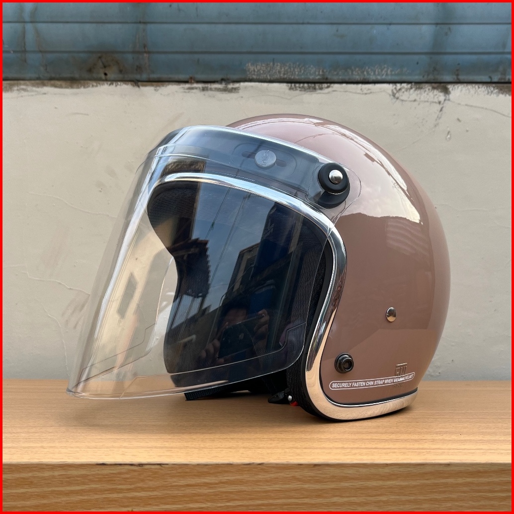 Helm Bogo Dewasa Pria Wanita List Chrome Kaca Venom Flat Retro Premium Sni
