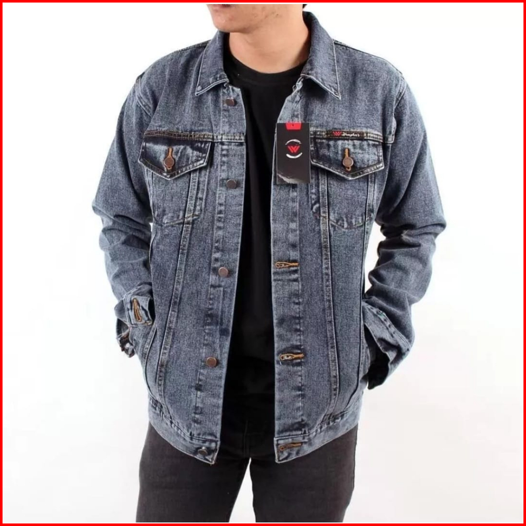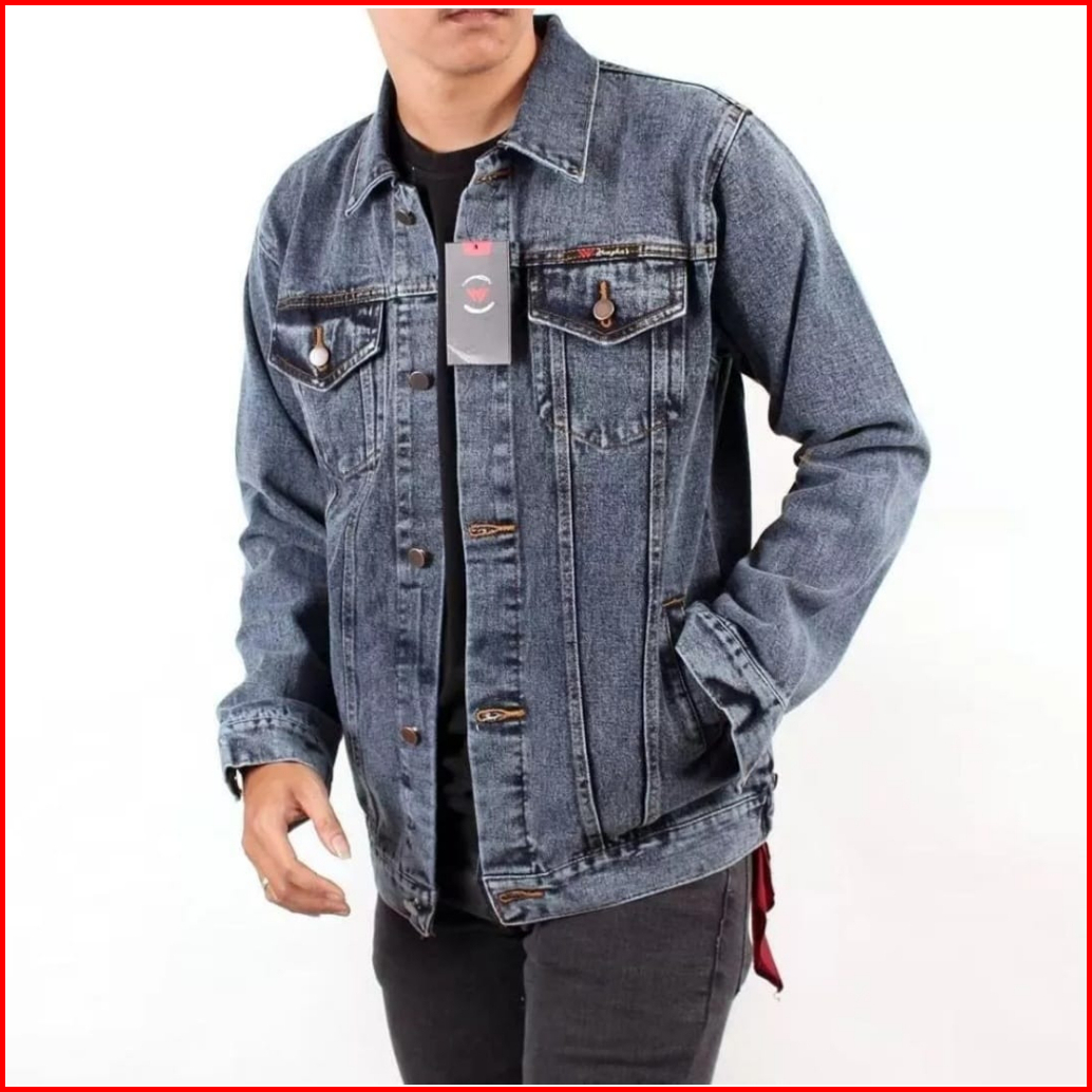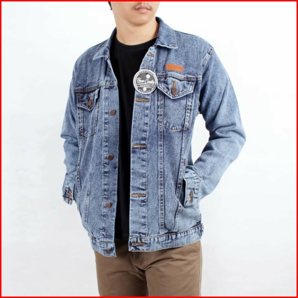 Jaket Jeans Denim Pria Sandwash Big Size Jumbo Xxl - Xxxl