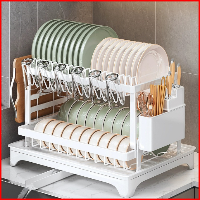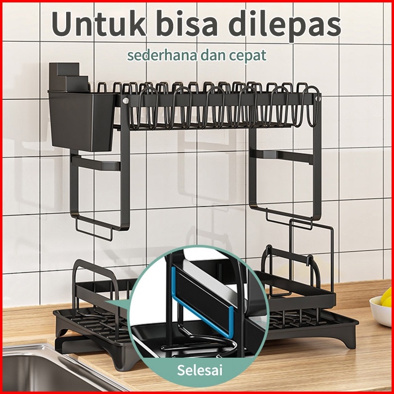Rak Piring Dapur Stainless Steel Penyimpanan Rak Pengering Piring Rak Mangkuk Piring