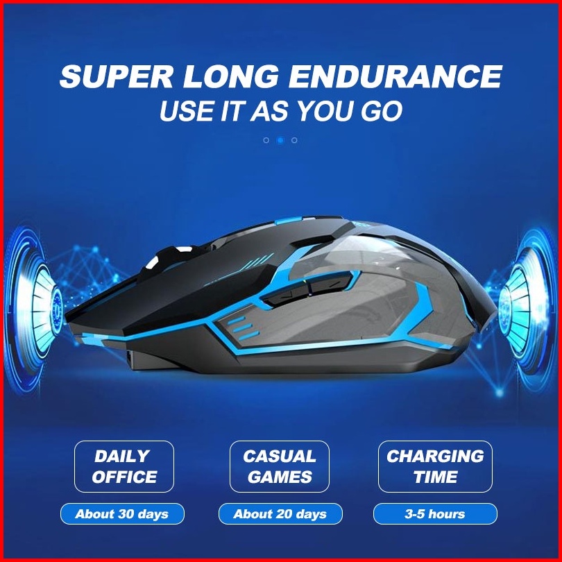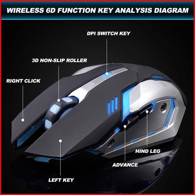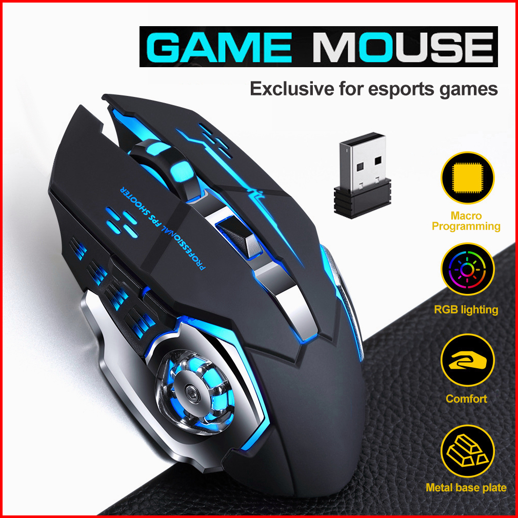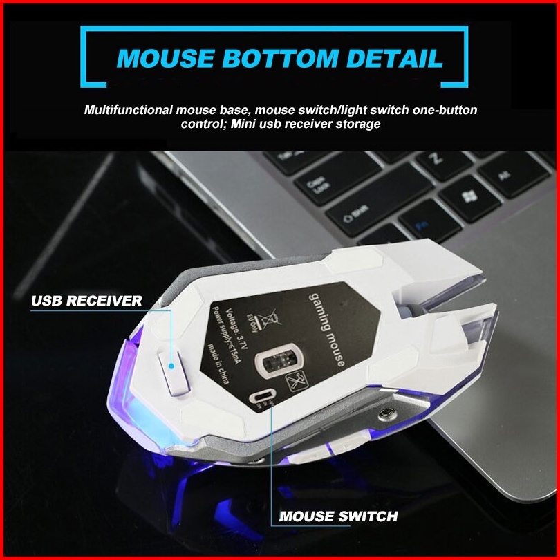 Mouse Gaming Wireless 2.4ghz 1600 Dpi Three-speed Adjustment Silent Click Rechargeable Support Laptop Pc Rgb Led