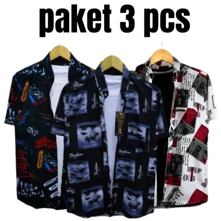 PAKET 3 PCS BAJU KEMEJA PRIA DEWASA ATASAN PRIA TERBARU BAJU PRIA LENGAN PENDEK BAJU DISTRO PRIA
