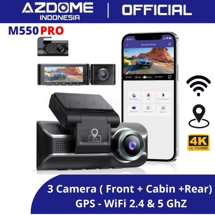 AZDOME M550 4K 3 KAMERA WIFI SUPERCAPACITOR GPS DASHCAM CAR DVR - M550 PRO, TANPA MEMORY