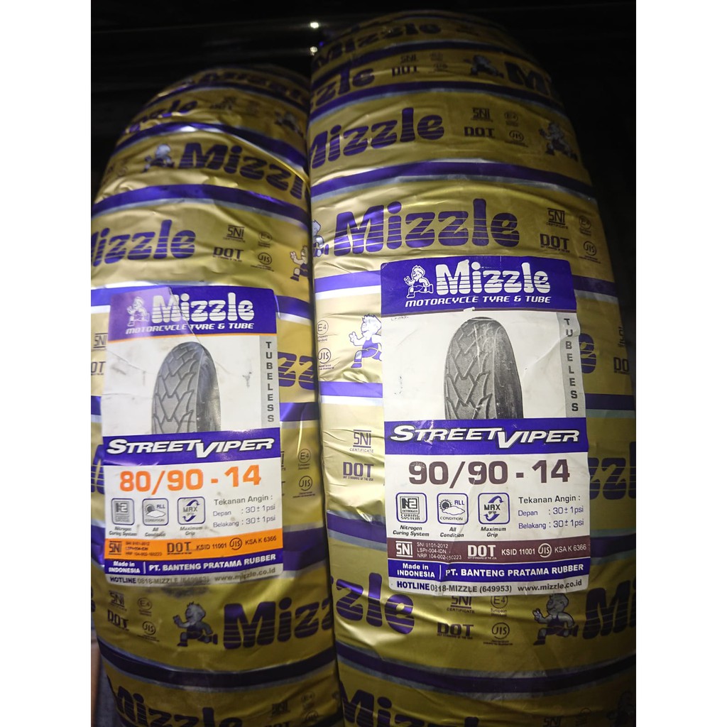 Paket Ban Motor Matic Ring 14 Tubeless Mizzle Street Viper 80/90 & 90/90 Free pentil!!