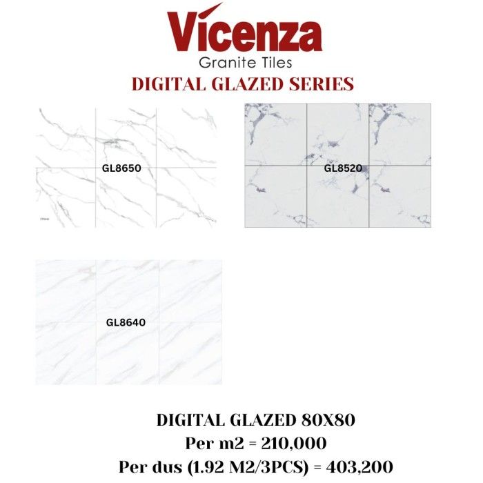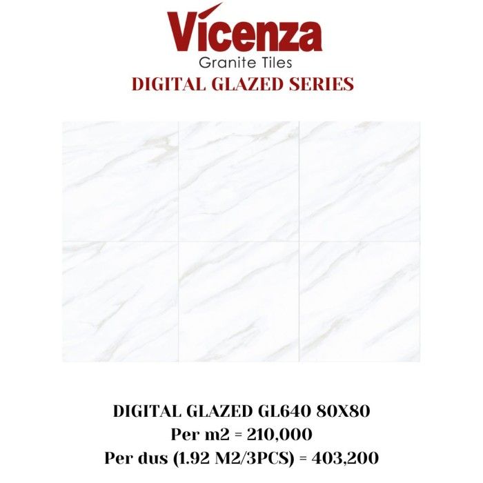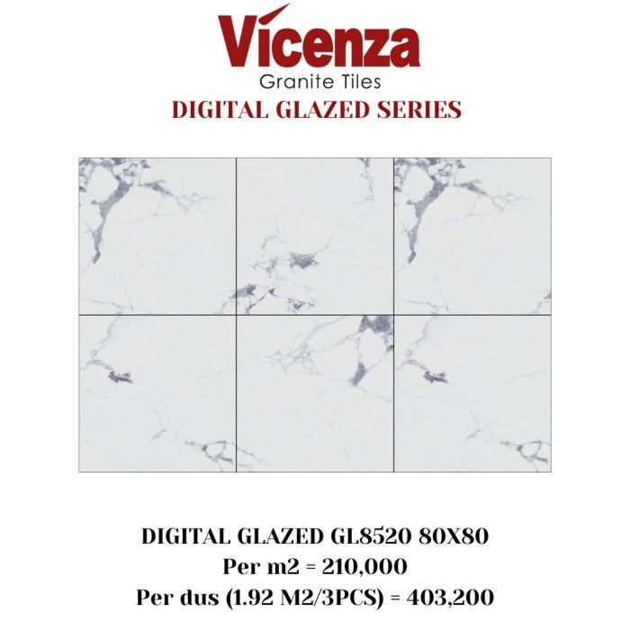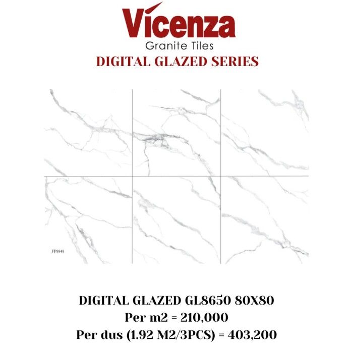 Granit/Granite Tile Vicenza 80x80 Digital Glazed Carara Putih - GL8650