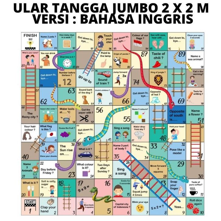 ULAR TANGGA JUMBO MAINAN EDUKASI ANAK FREE BANTAL DADU / ULAR TANGGA 2X2M / FULL COLOUR