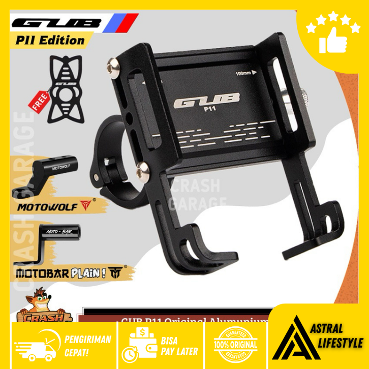 GUB P11 Original Alumunium Alloy Phone Holder HP Motor Full Besi Stang Spion Dudukan Ponsel Tempat Handphone