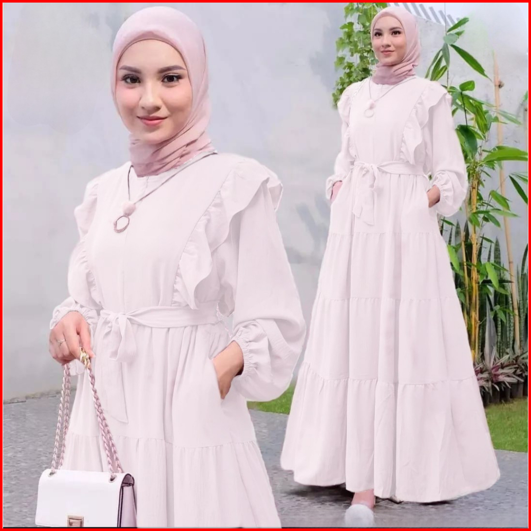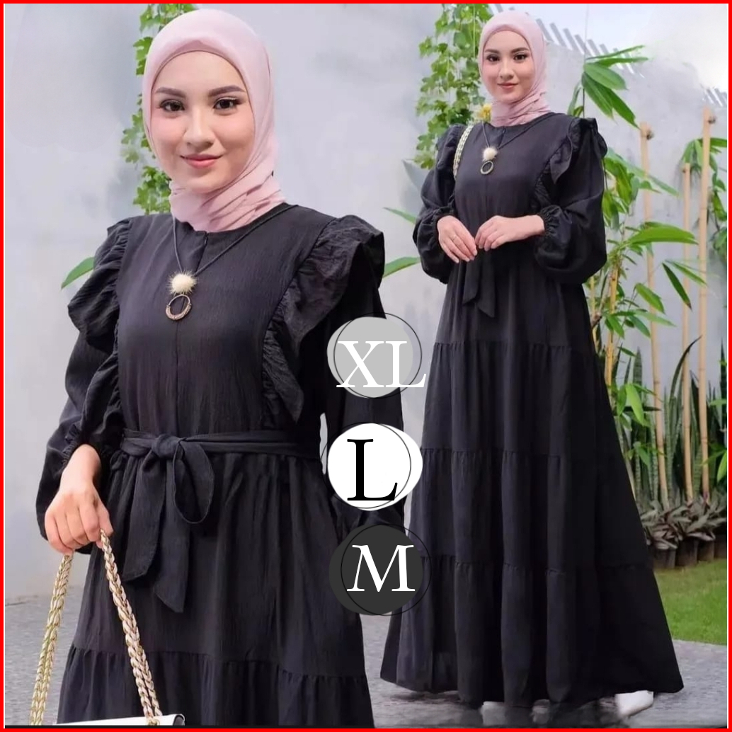 Gamis Wanita Cantik Elegan Baju Muslim Simple Murah Shopiya Maxy Dress Susun Bahan Crinkle Terlaris 2025