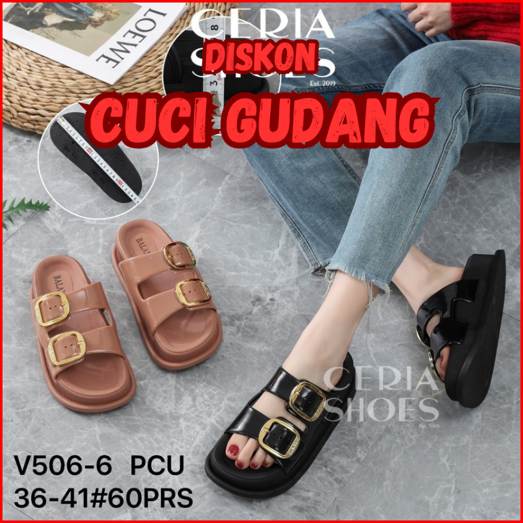 Sale Sandal Slop Wanita Import Model Strap Gesper Bahan Rubber Non-slip Balance V506 -6