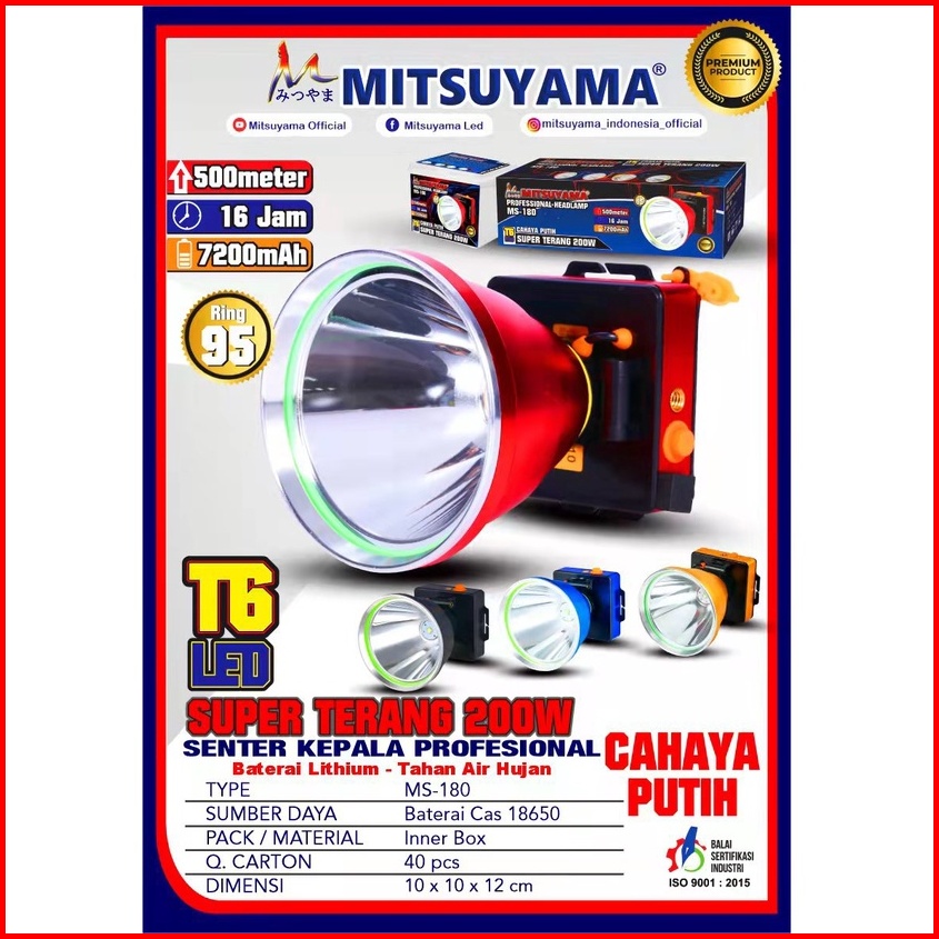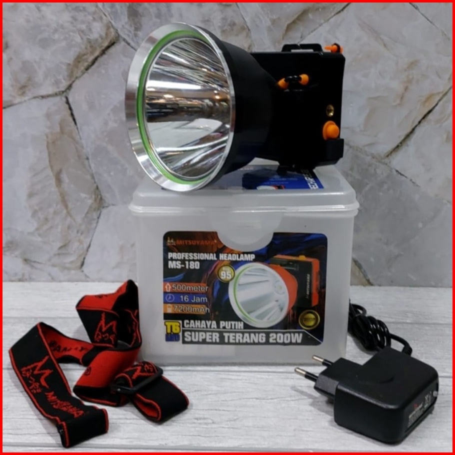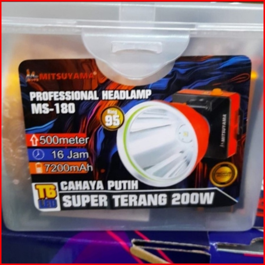 Barangunik2021-senter Kepala Led Putih 200w 7200mah Tahan 16 Jam Mitsuyama Ms-180 Headlamp Jumbo