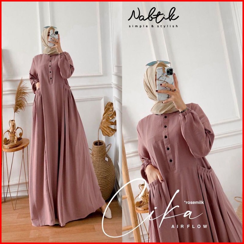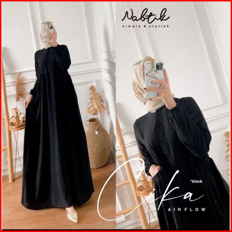 Cika Dress Crinkle Airflow Gamis Polos Terbaru