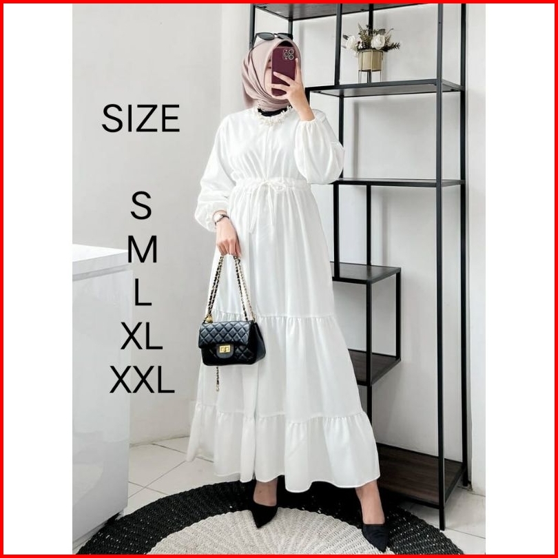 Adira Size S M L Xl Xxl Maxy Dress Baju Remaja Putih Polos Kekinian Gamis Crincle Airflow Premium