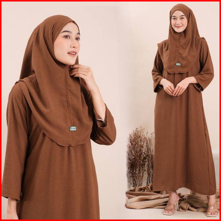 Ayra Dress Wanita Gamis Set Hijab Bergo Bahan Crinkle Airflow Premium