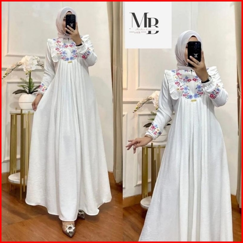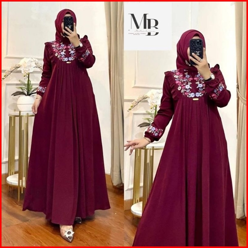 Gamis Bordir Bunga Timbul Bahan Crinkle Gamis Azizah Mewah Terbaru Termurah