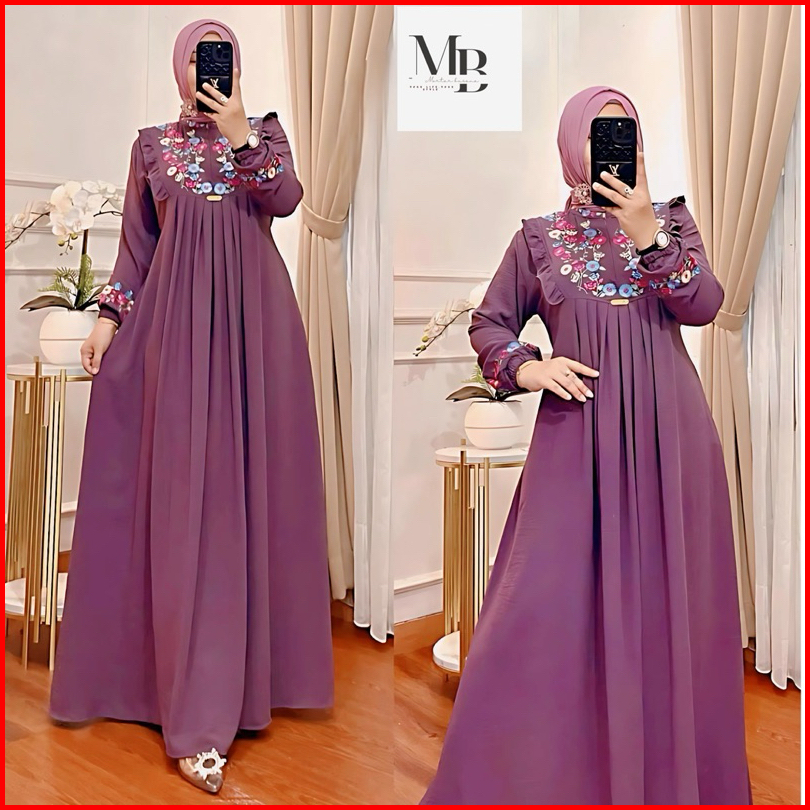 Gamis Azizah Bordir Motif Bunga Timbul Bahan Crinkle Airflow Terbaru