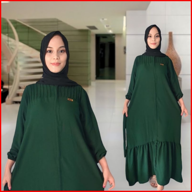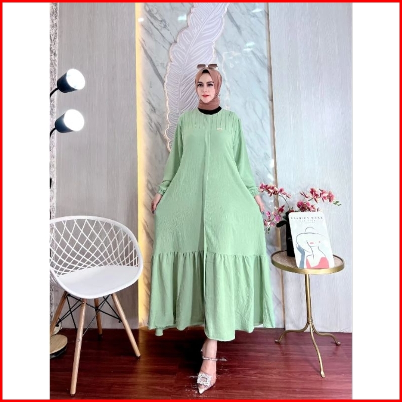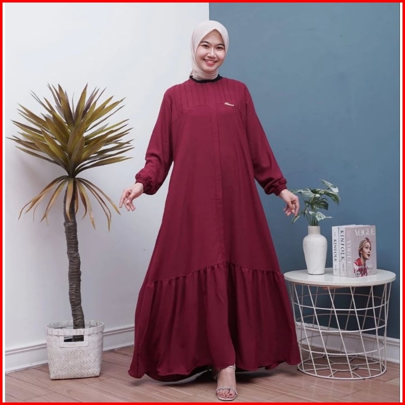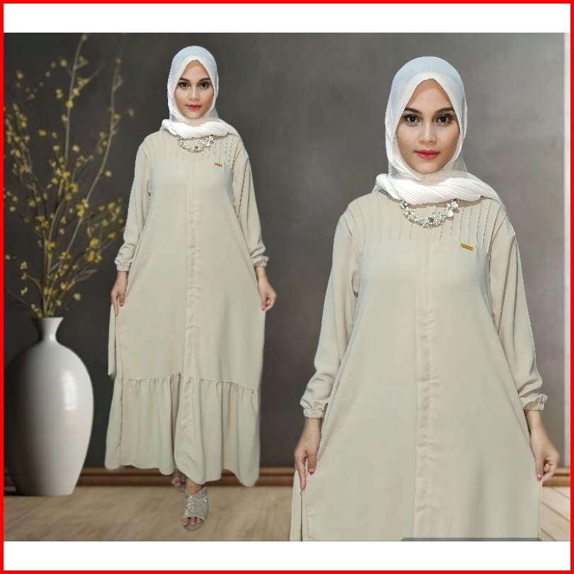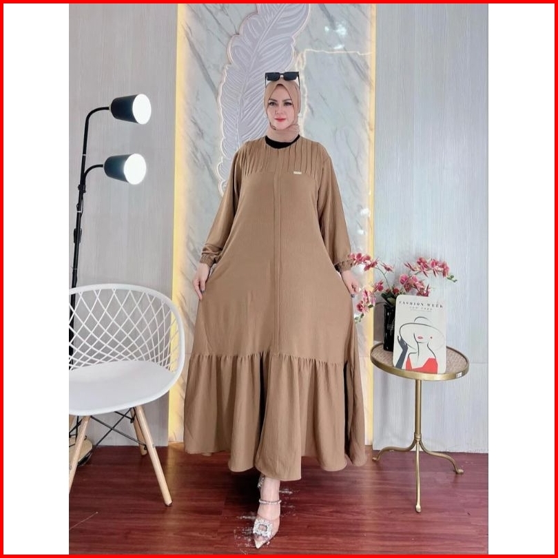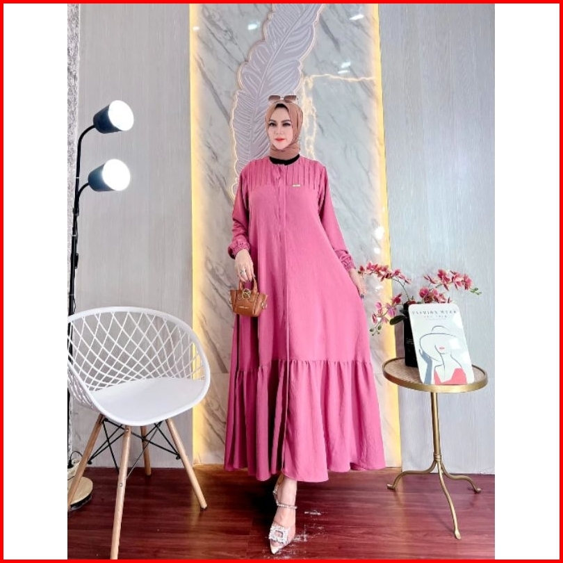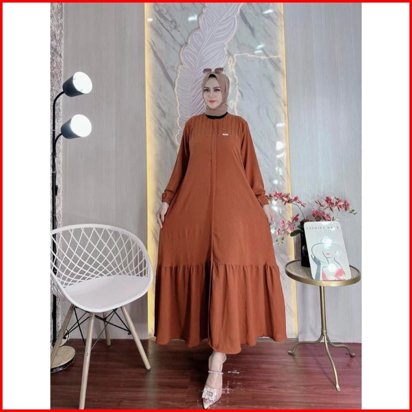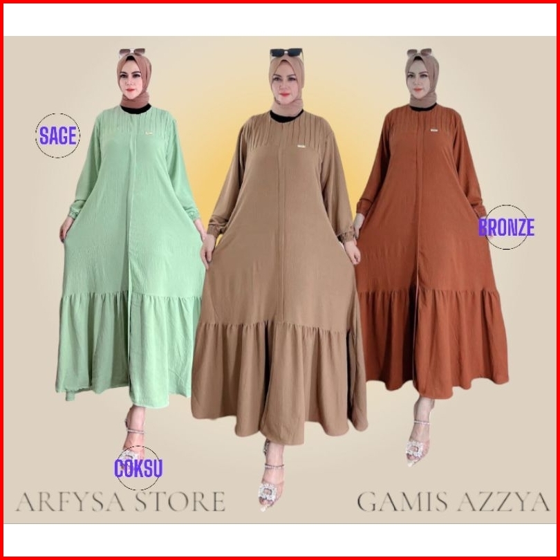 Gamis Azzya Cubit Rempel Crinkle Airflow Elegan Mewah Simple Basic Dress Wanita Syari Muslim Kekinian Busui Frendly Leng