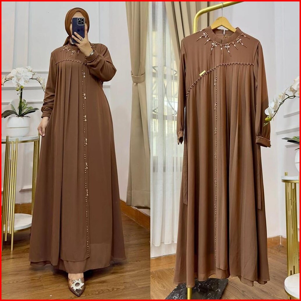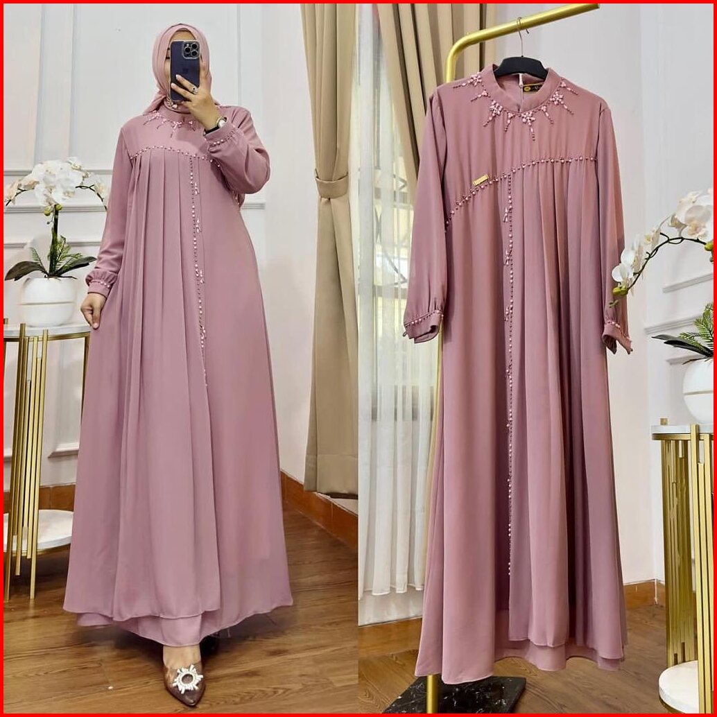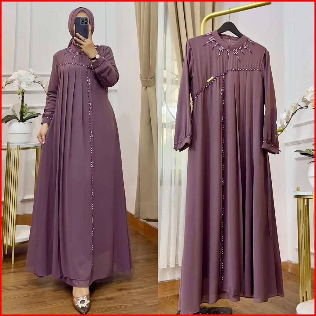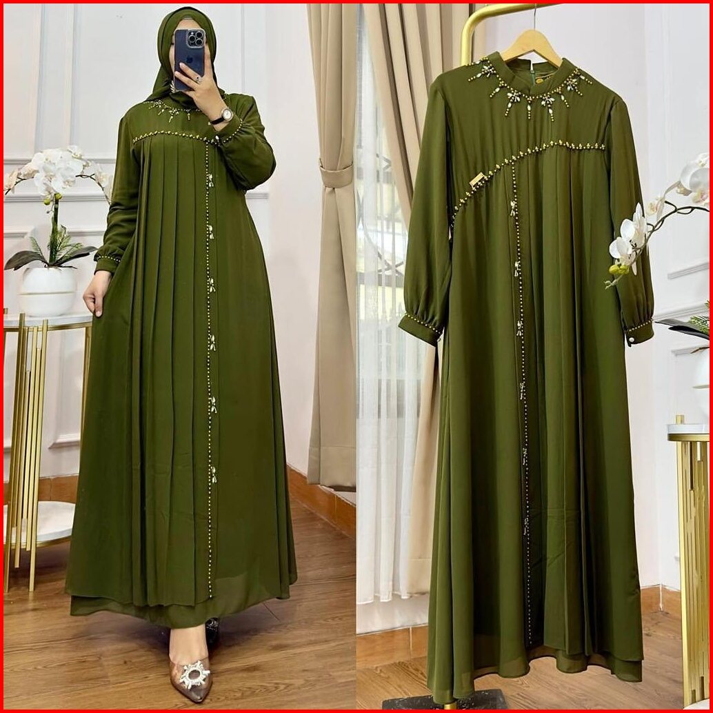 Hanifah Dress Gamis Muslim Wanita Bahan Ceruty Babydoll Aplikasi Payet Mewah Casual Dress Gom