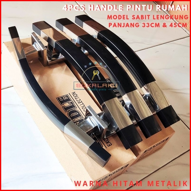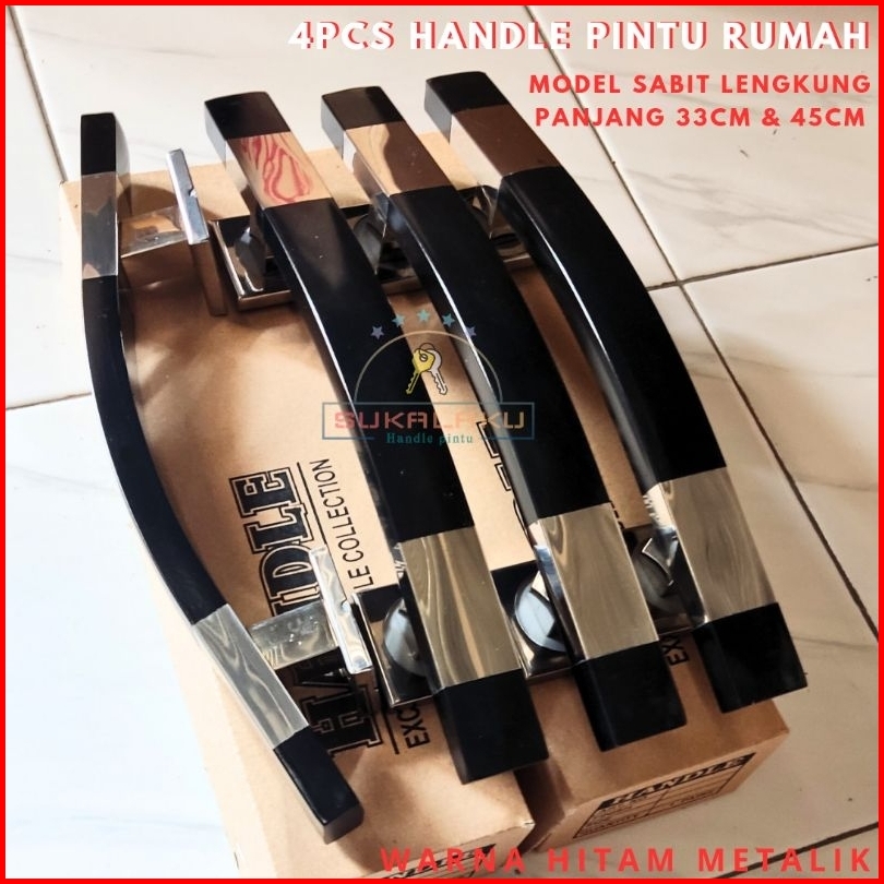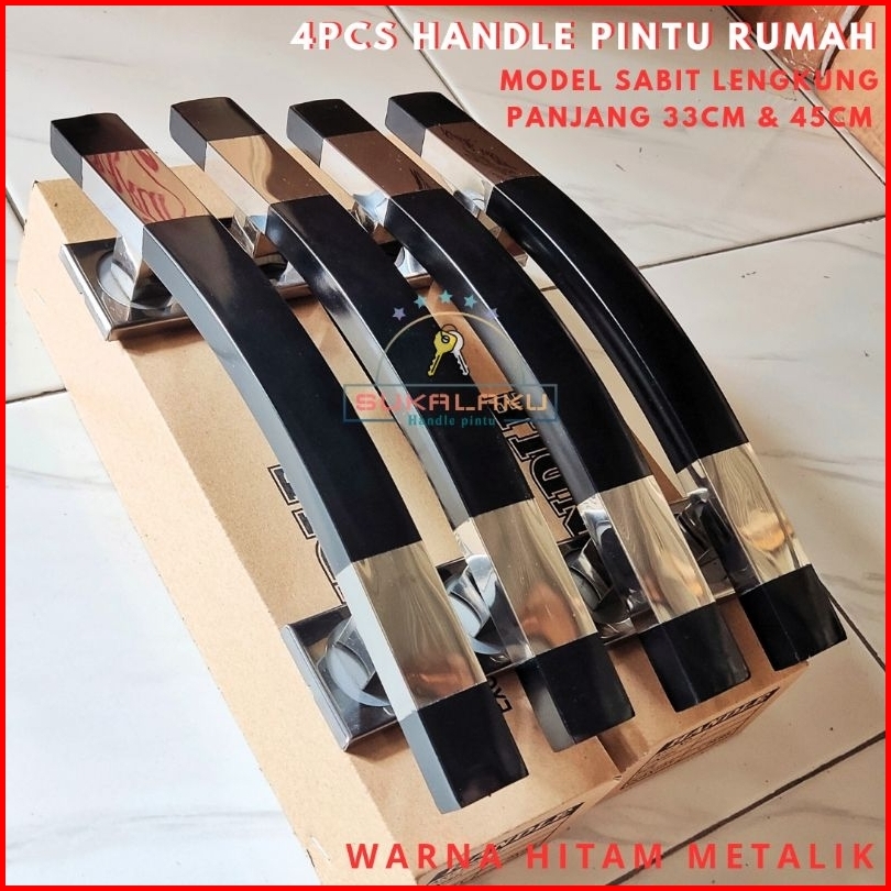 4biji Handle Pintu Rumah Model Kotak Lengkung Sabit Warna Hitam Untuk Pintu Depan Kupu Tarung