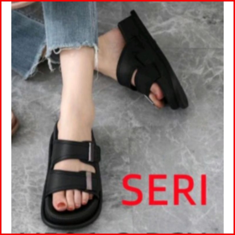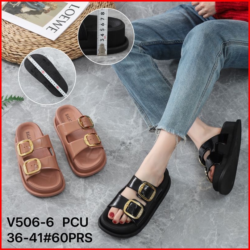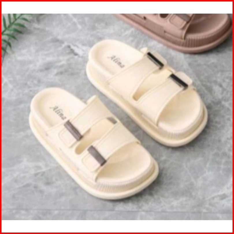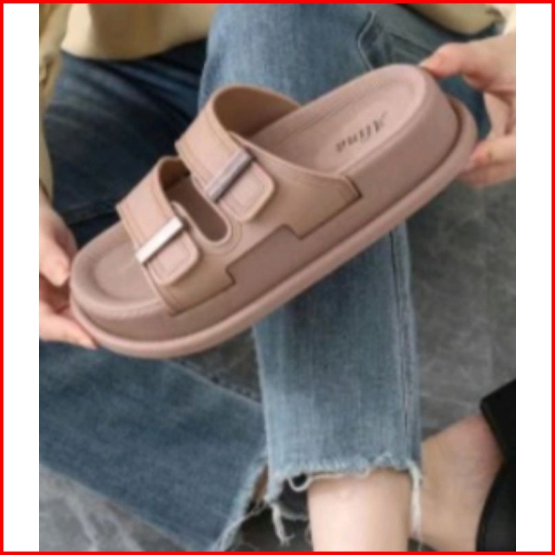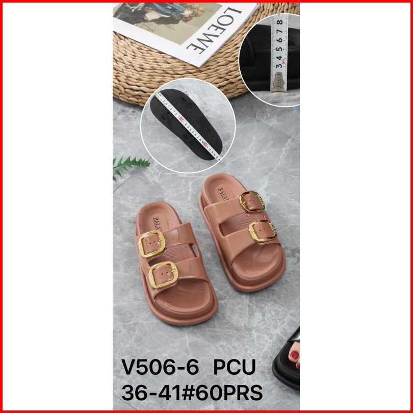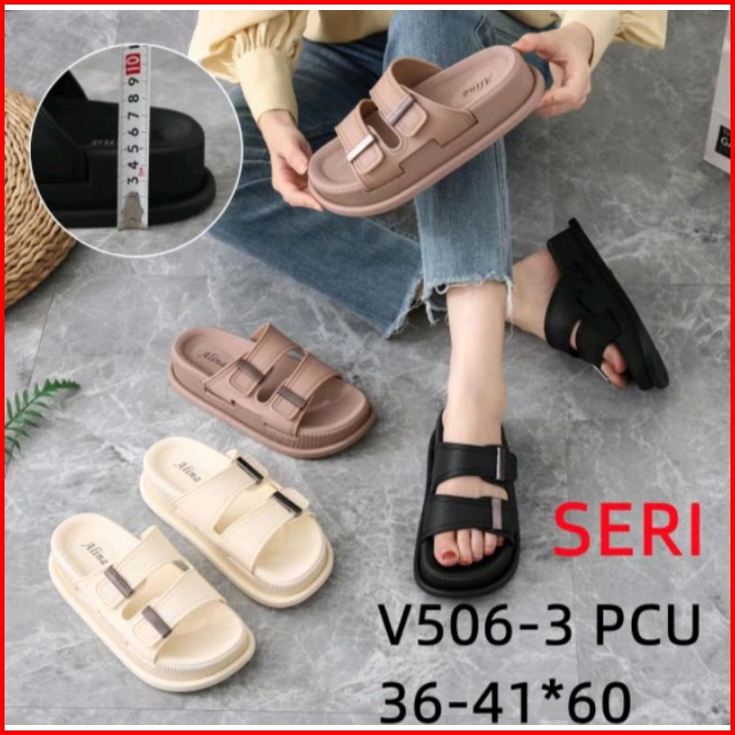 Sandal Wedges Karet Import Tebal 5 Cm Motif Ban Dua Klip V506