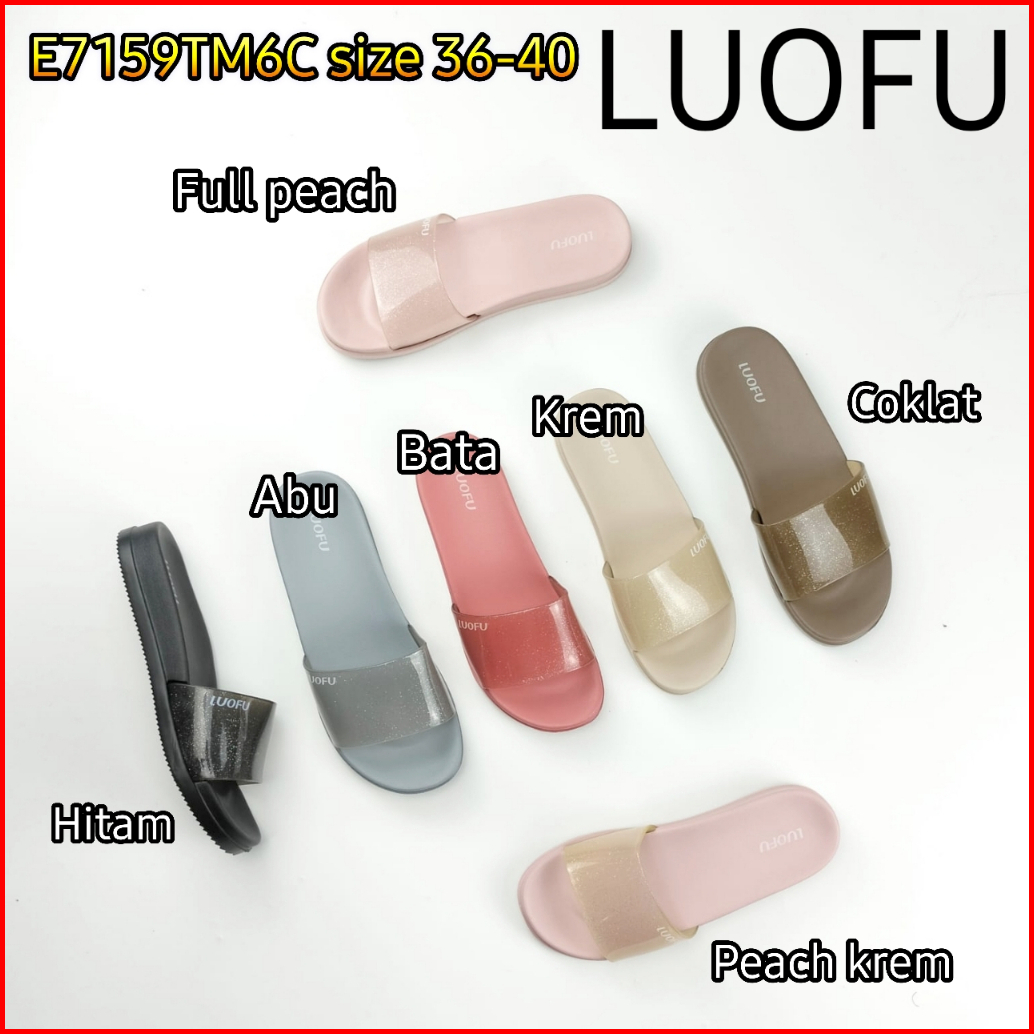 E7159tm6c Luofu Original Jelly Sandal Karet Empuk Murah Wanita Selop Murah Sendal Cewek Import