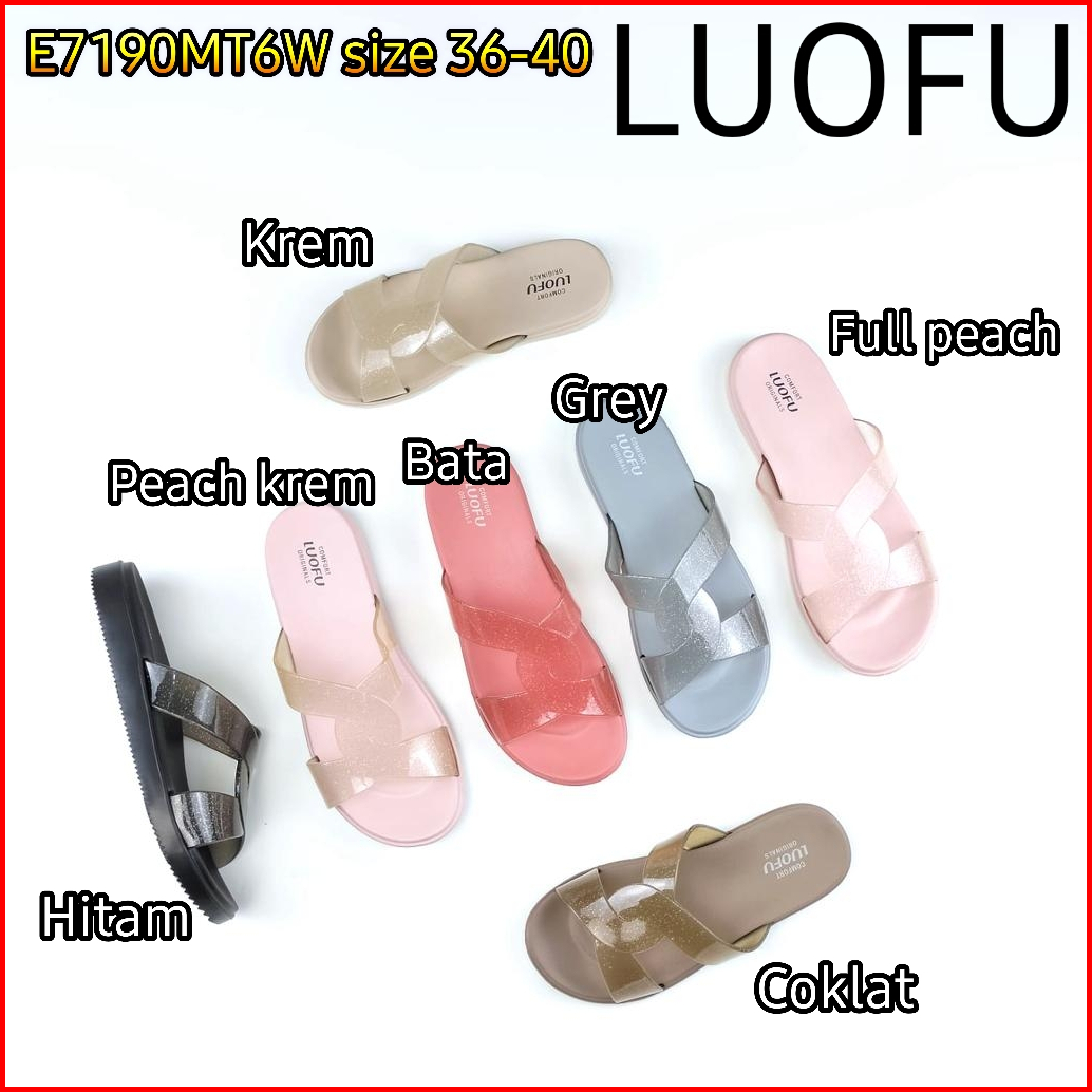 E7190mt6w Luofu Original Jelly Sandal Karet Empuk Murah Selop Wanita Cewek Import
