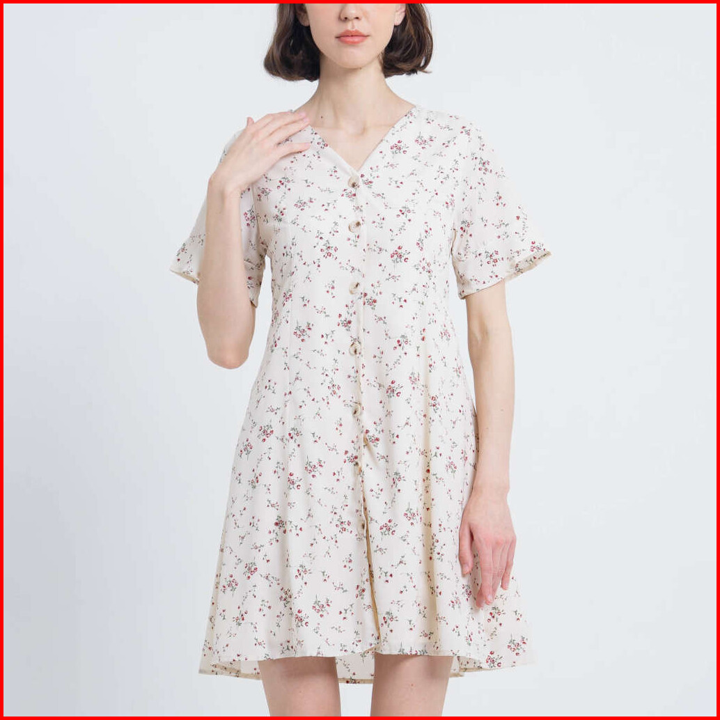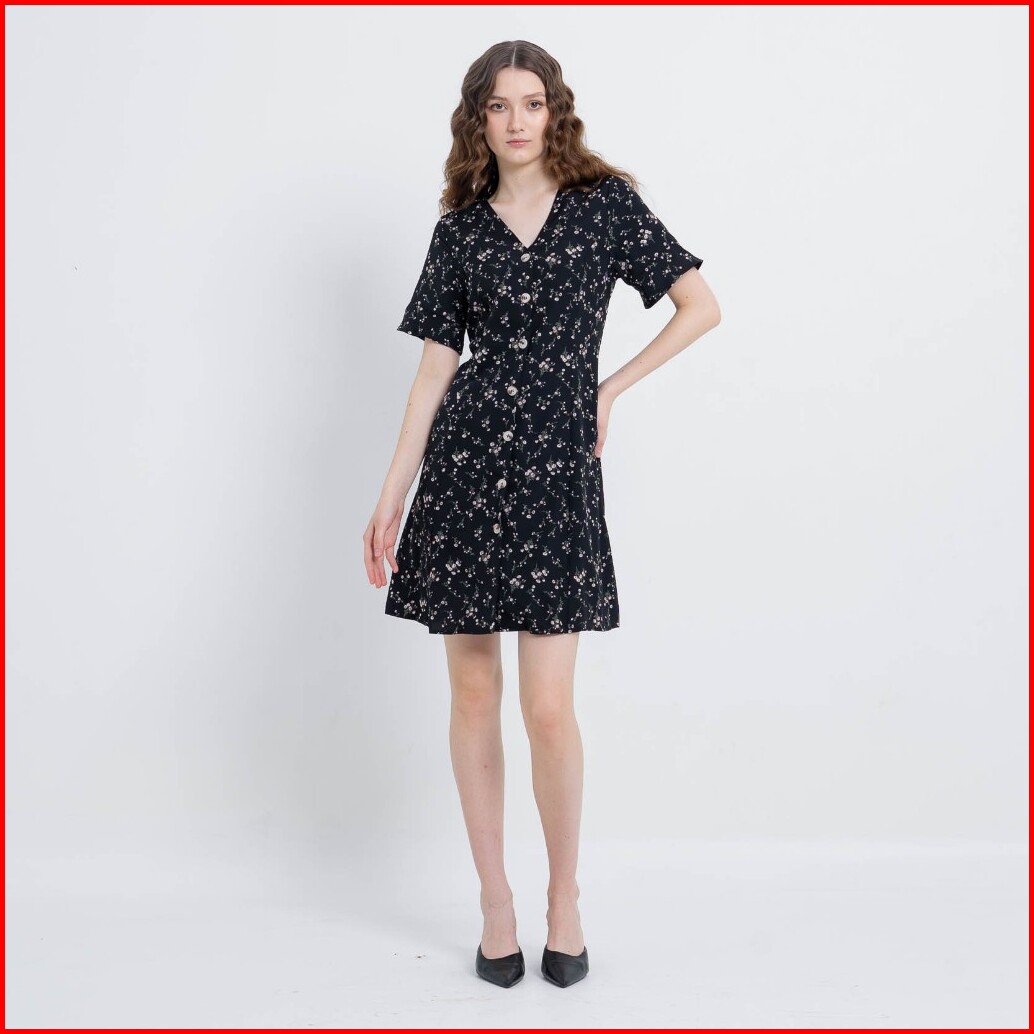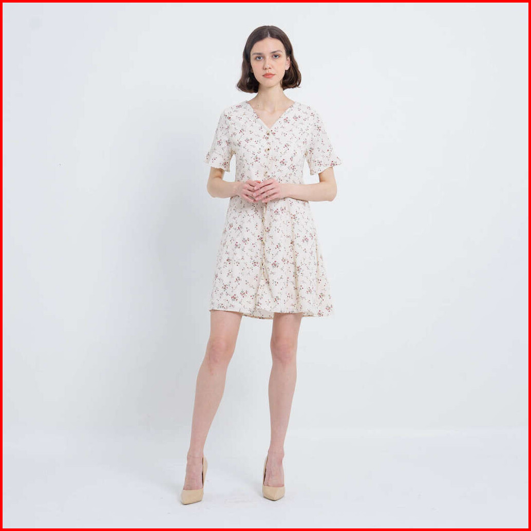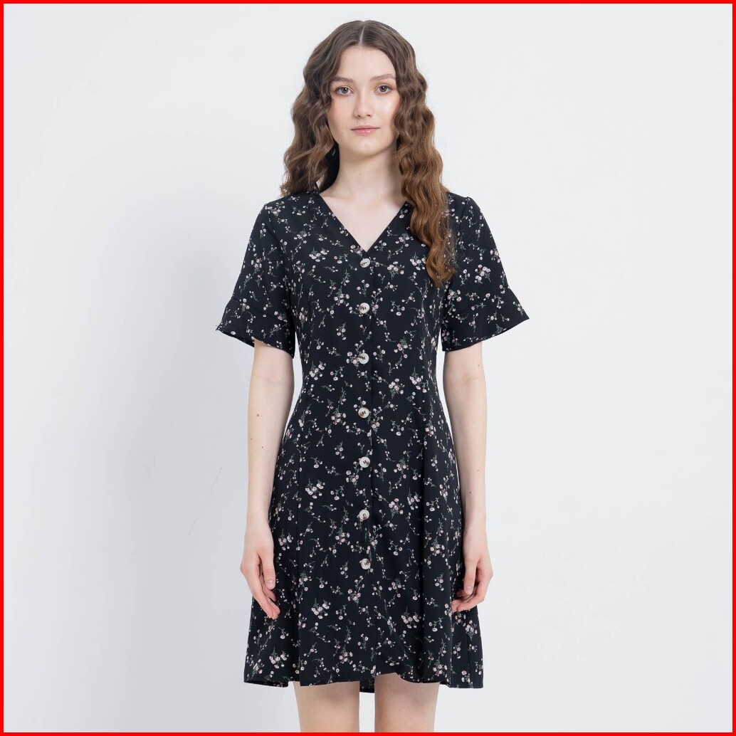 This Is April Gaun Midi Wanita Motif Floral Korean Style Violy Dress
