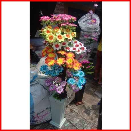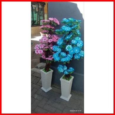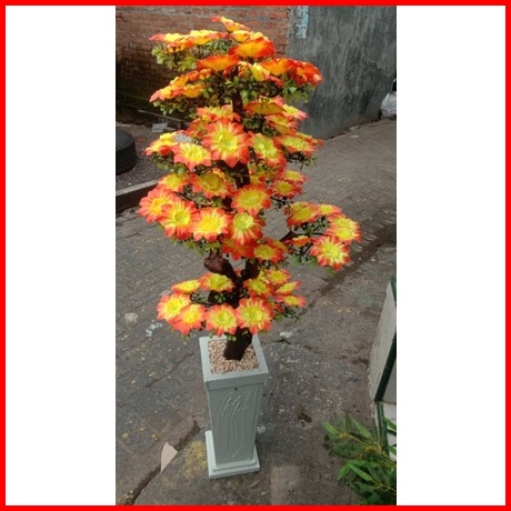 Bunga Hias Sudut Ruangan Dengan Pot Dan Bebatuan Kwalitas Class Super Dekorasi Artificial Plastik Import