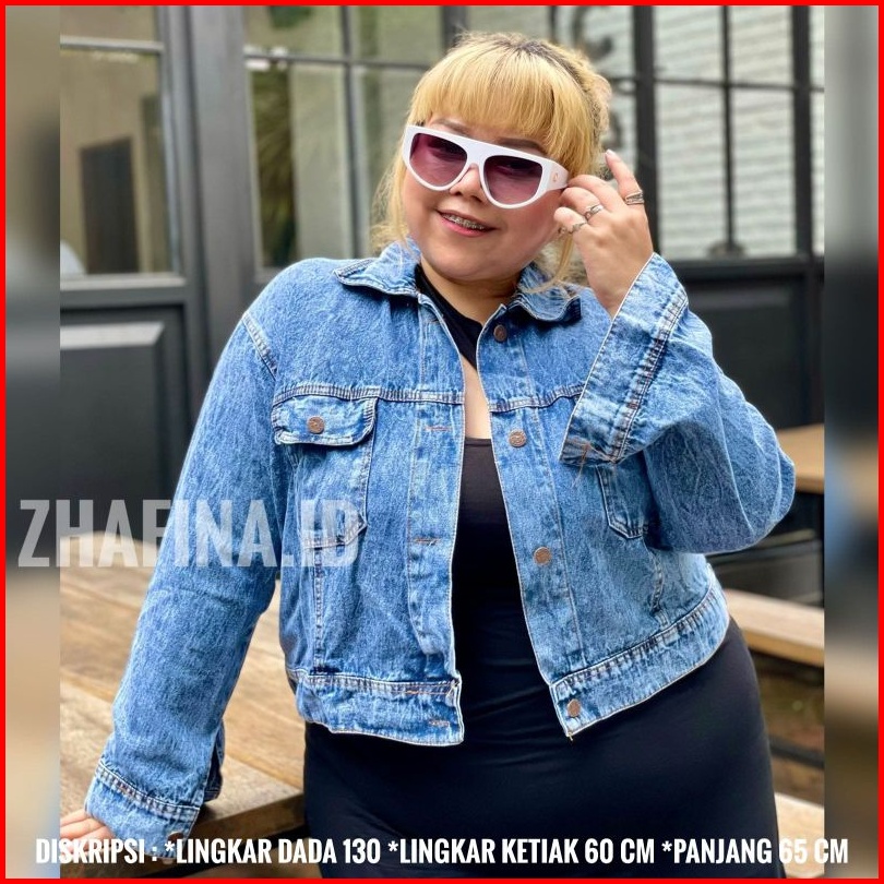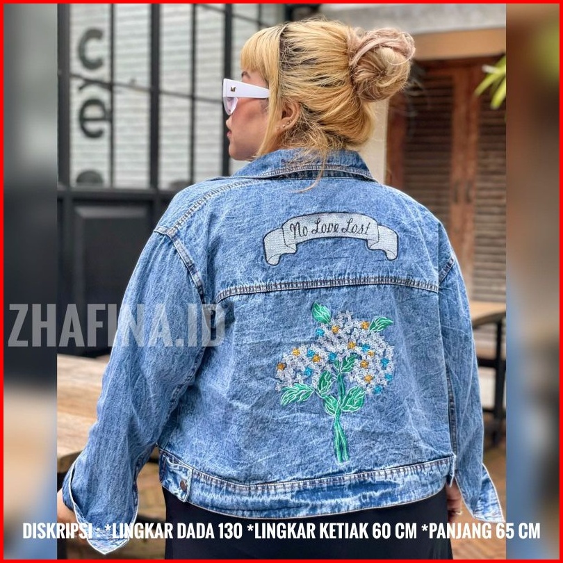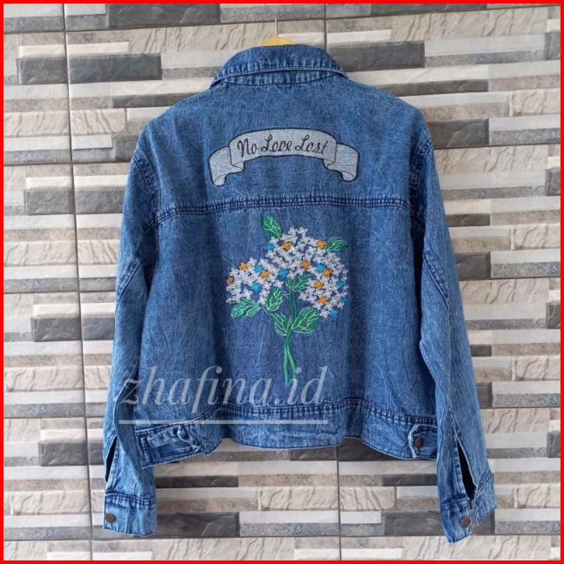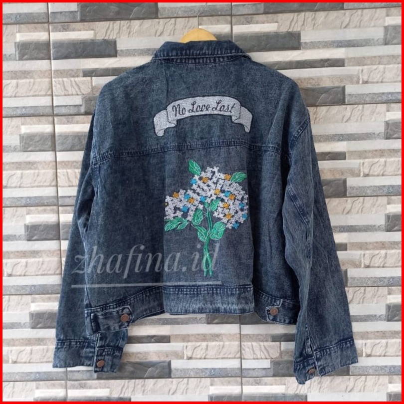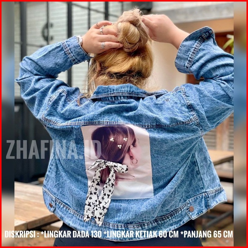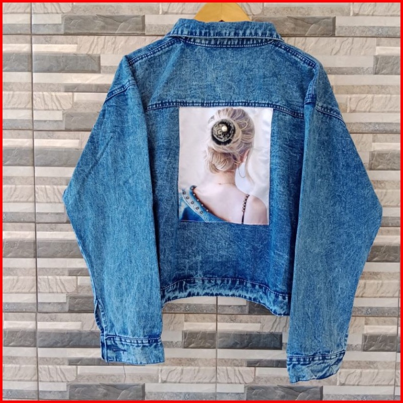 Jaket Crop Jeans Denim Bordil Jaket Wanita Jumbo Motif Oversize Kekinian