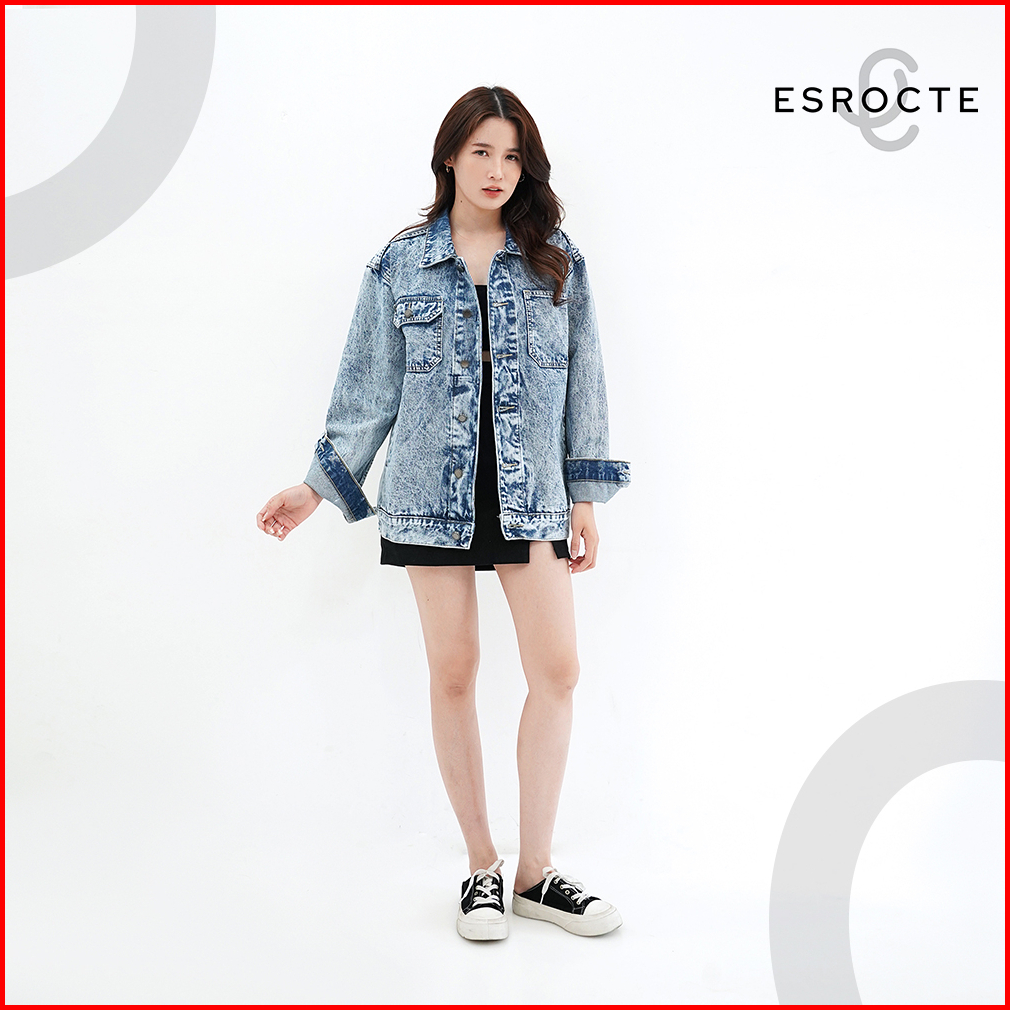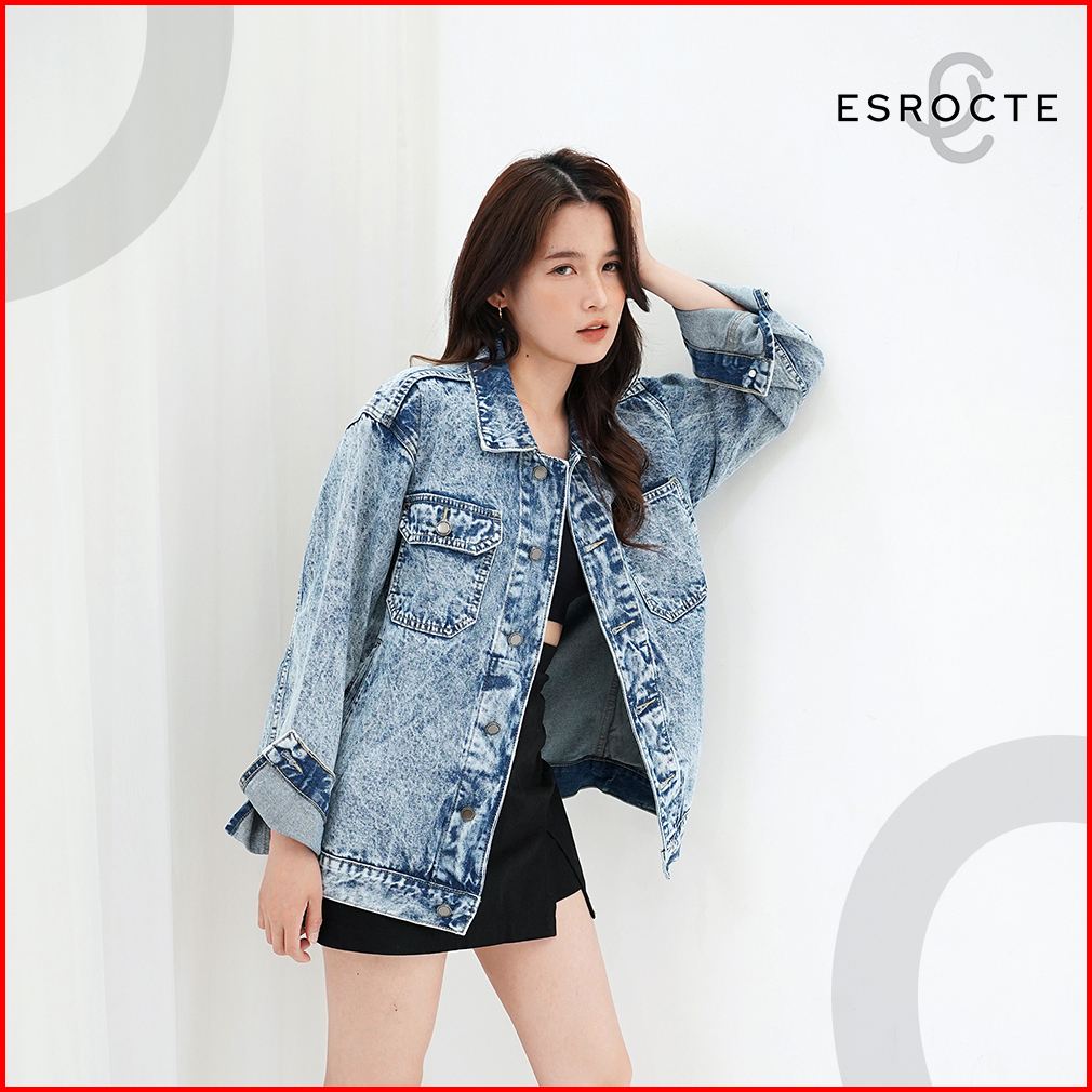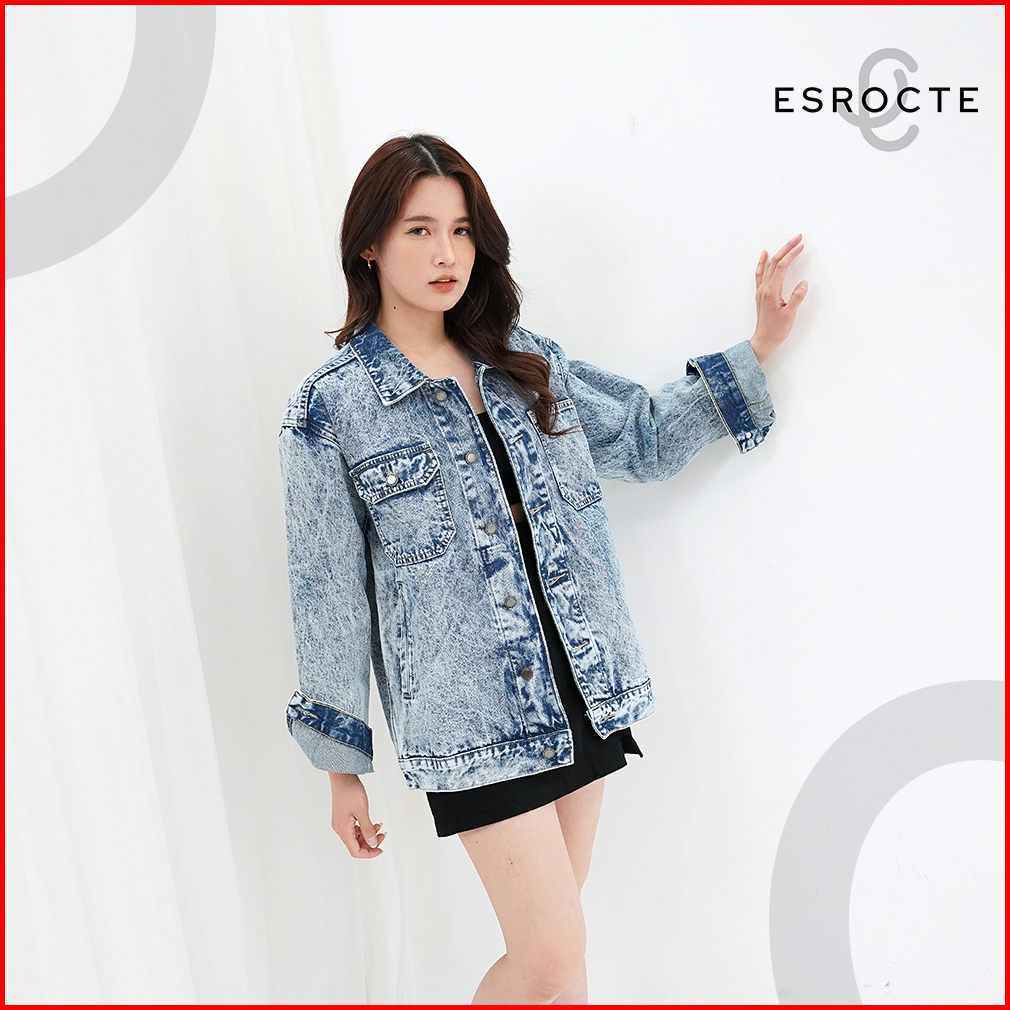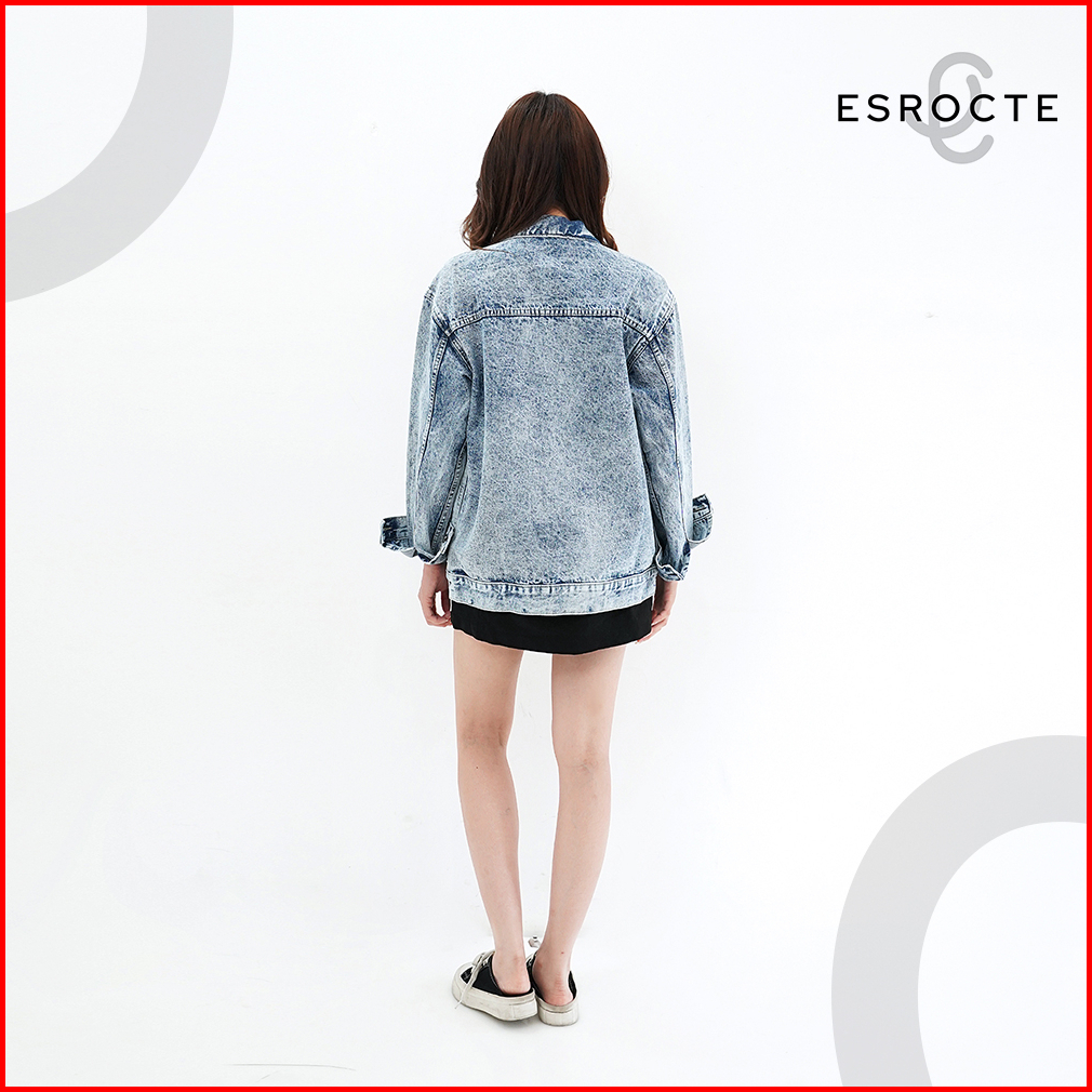 Esrocte Jaket Denim Jeans Wanita Oversize Lengan Panjang Pt4 - Blue Snow M-xl
