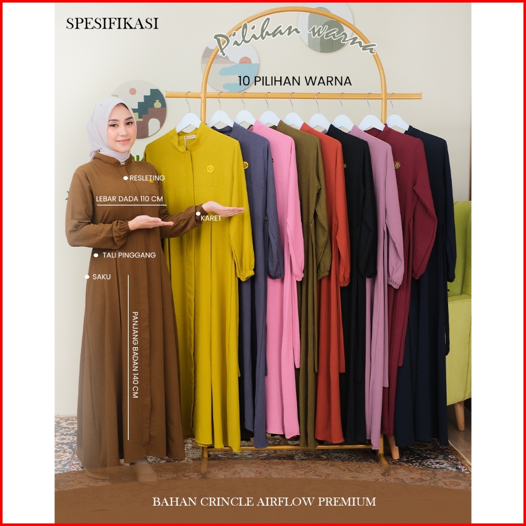 Gamis Salwa Bahan Crinkle Airflow Premium Baju Wanita Muslimah Polos Terbaru Lebaran 2024 Busui Friendly By Nabil Series