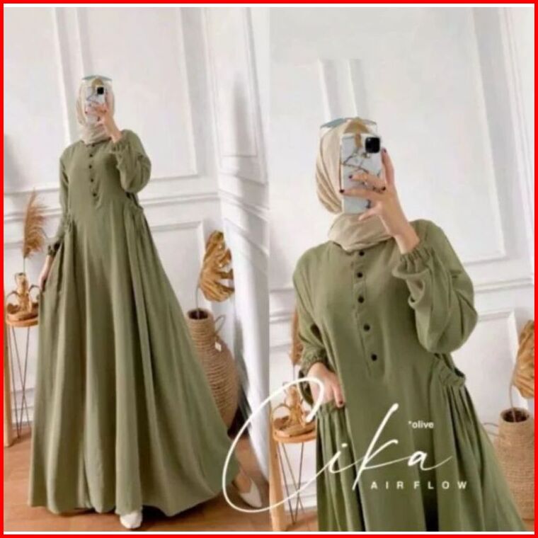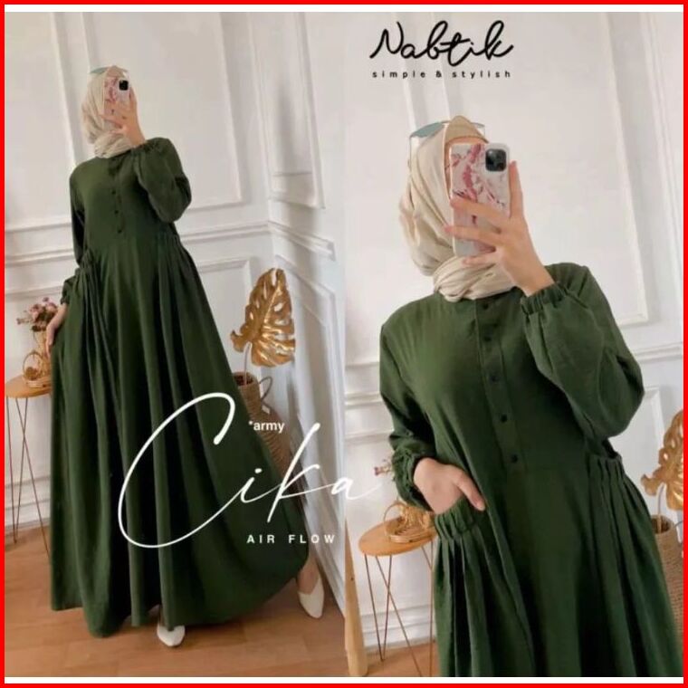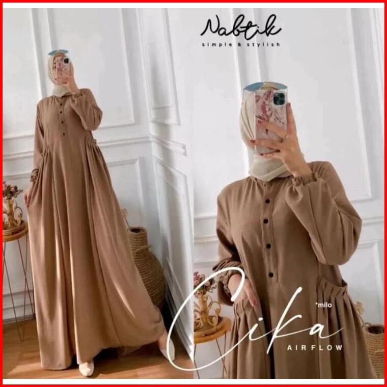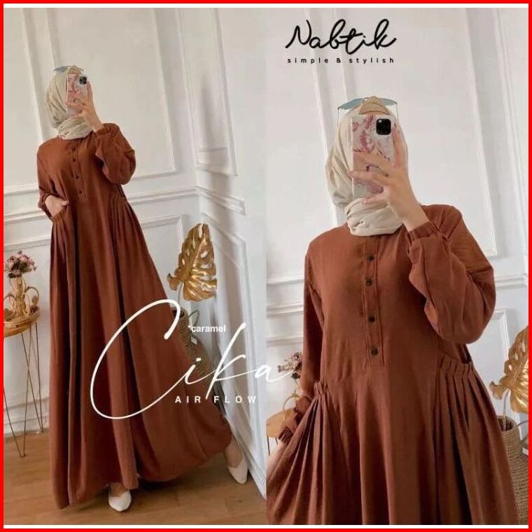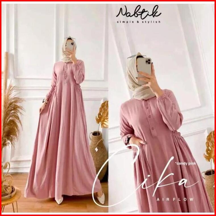 Others Cika Maxi Dress Bahan Crinkle Air Flow Gamis Wanita Muslim Elegan Gamis Jumbo Terbaru Gamis Modern