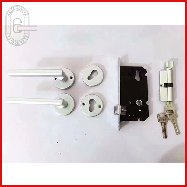 Gagang Pintu 1 Set Siap Pasang Gaya Eropa Handle Lock Door White Minimalis Model Lurus Bedroom Living Room Mechanical An
