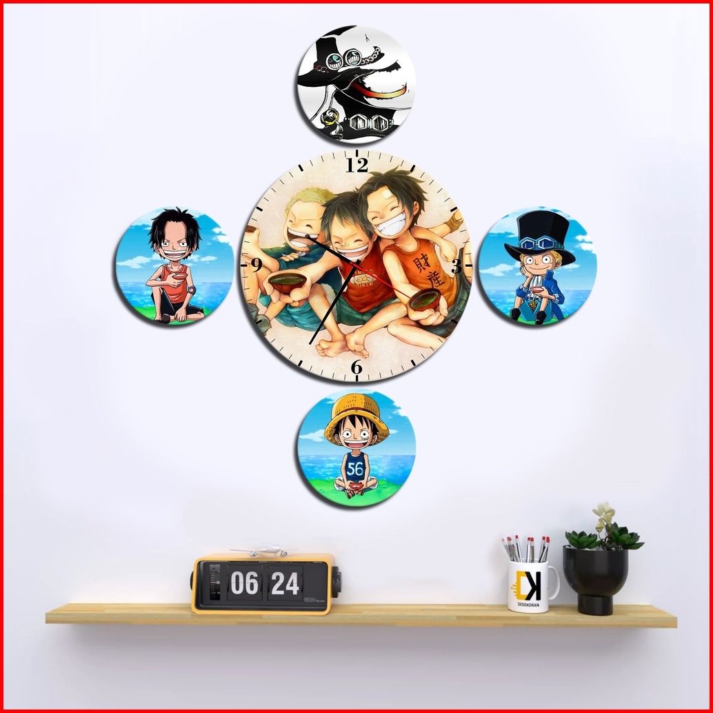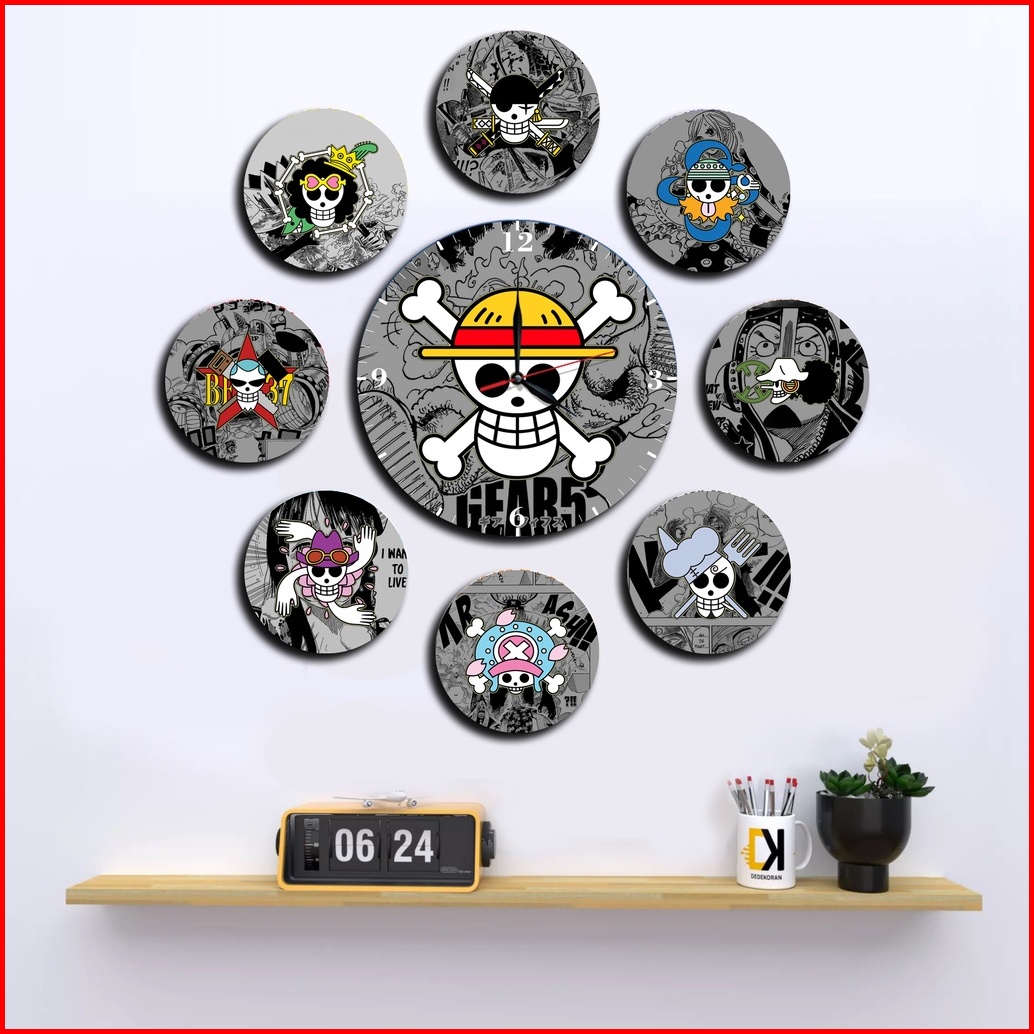 Jam Dinding Kayu Bulat Jumbo 1 Set Anime Onepiece Zelashop20