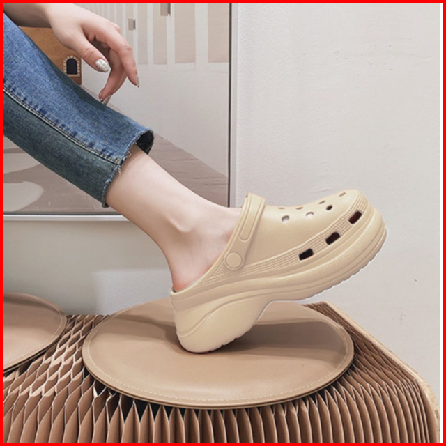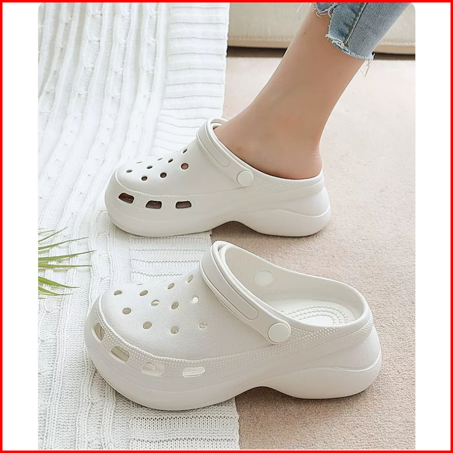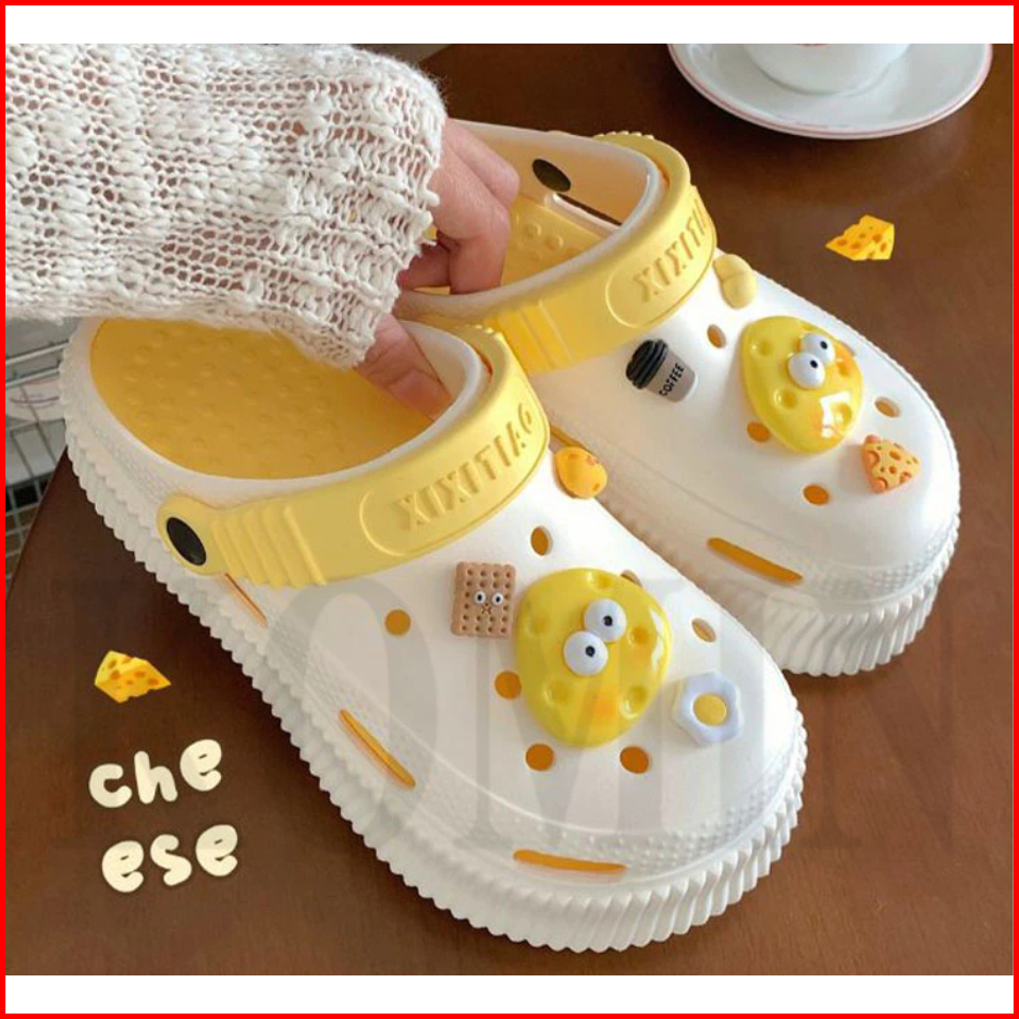 Komin-sandal Wanita Slip On Baim Fuji Polos Viral Jibbitz Sandal Cewek Selop Wedges Platform Phylon Stiker 3d Warna Dua