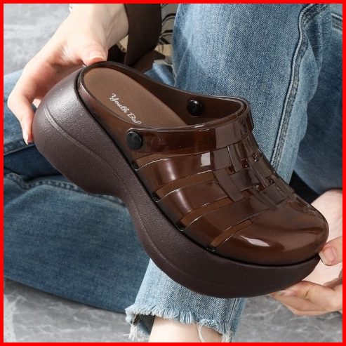 Sandal Wanita Korean Import Platform Hak Tebal Rubber Pvc Non-slip Sole Bahan Empuk 0234