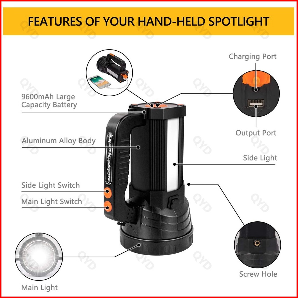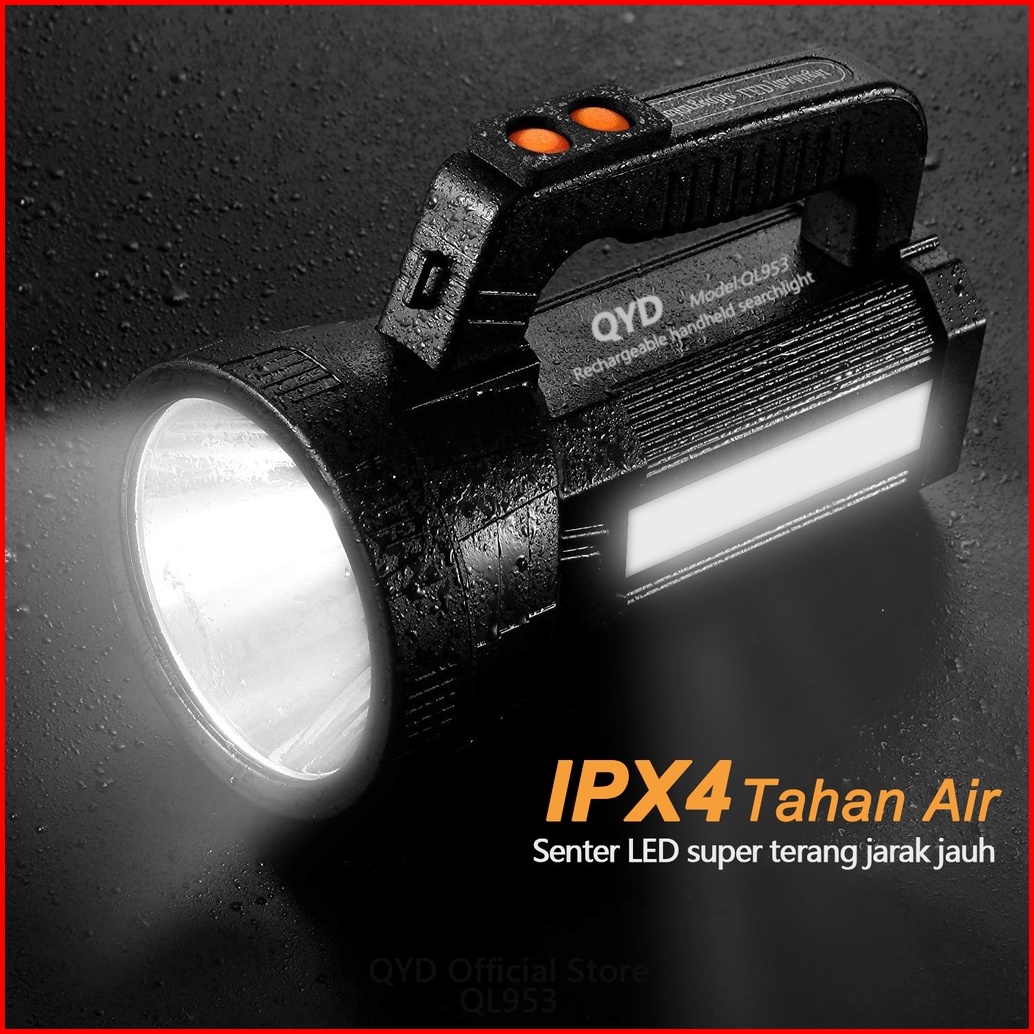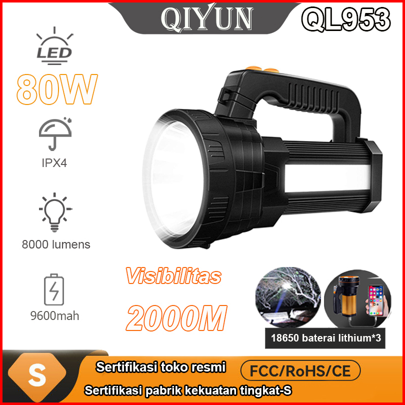 Qyd Senter Led Super Terang Jumbo Multifungsi 80w Ipx4 Tahan Air Waterproof Power Bank Lampu 8000 Lumen Senter Besar Cas