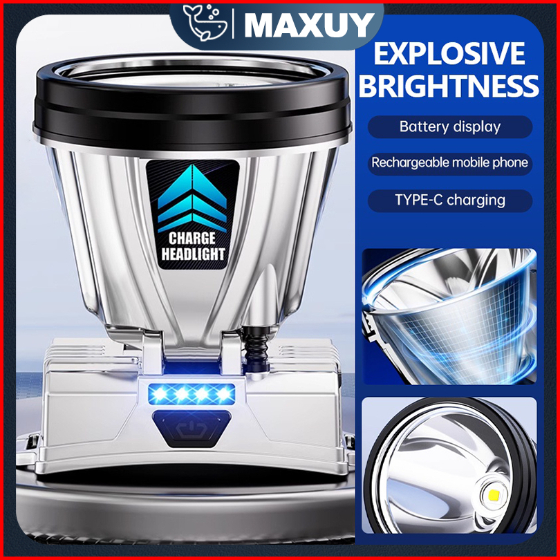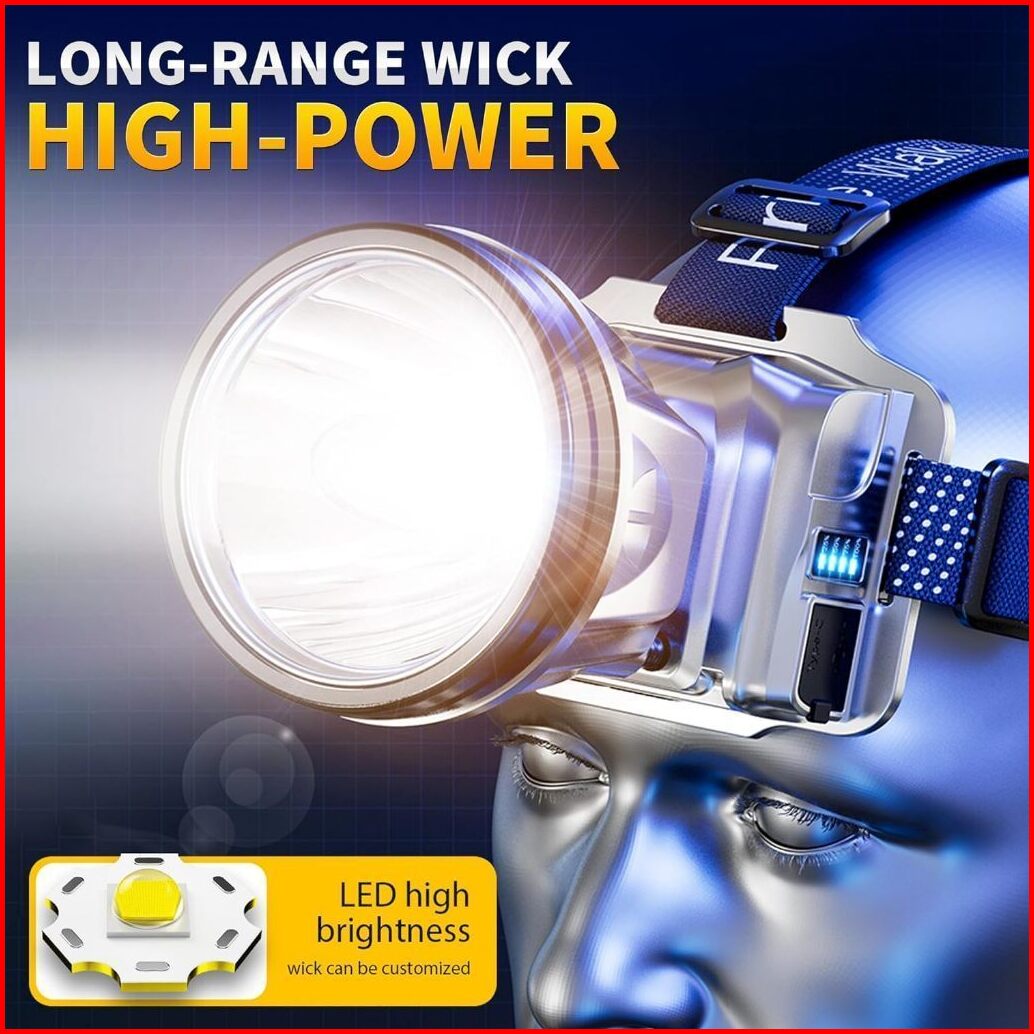 Headlamp Outdoor Senter Kepala 300 Watt Super Terang Cas Listrik 1865000mah Jarak Jauh 900000m 900jam