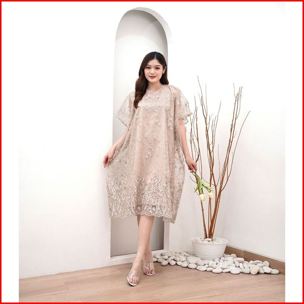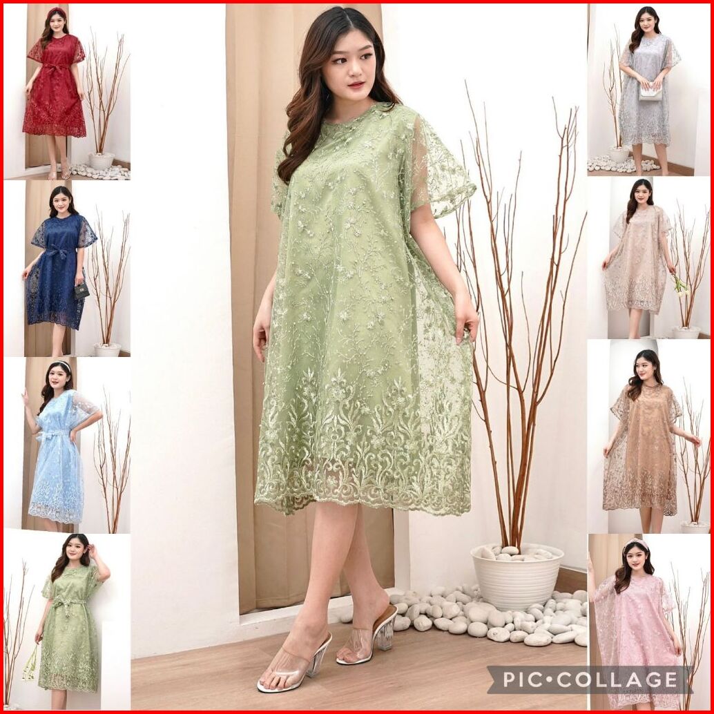 Jamin Real Dress Jovita Brukat Bordir Tullle Glitter Mutiara Brokat Tille Brokat Tile Dres Imlek