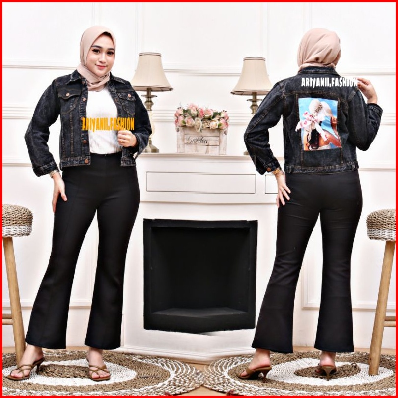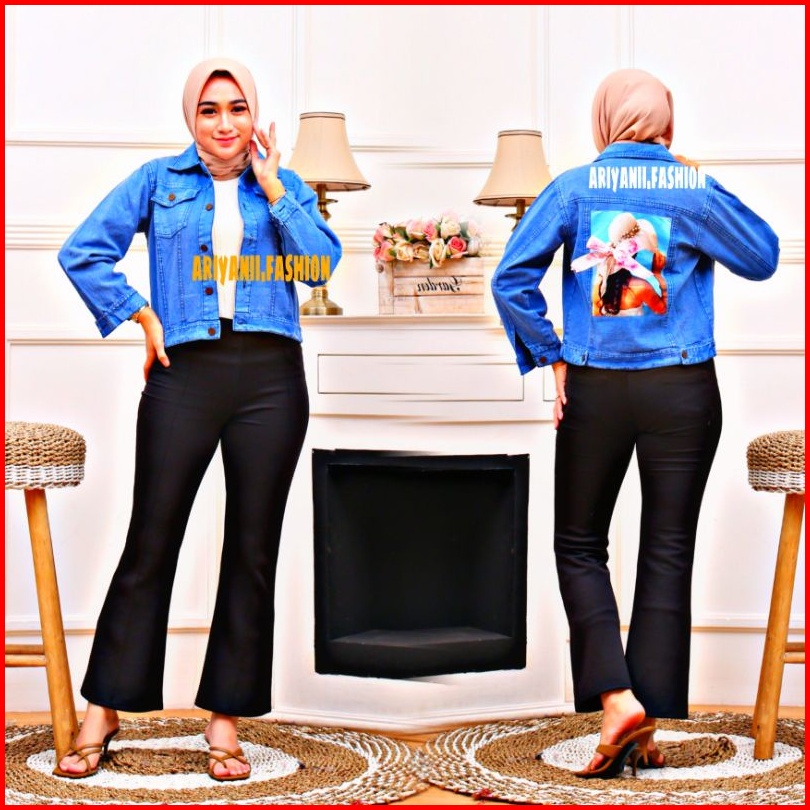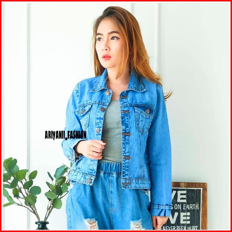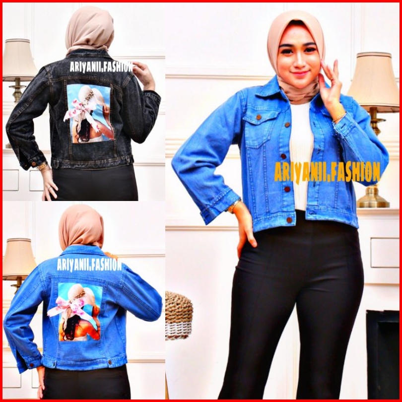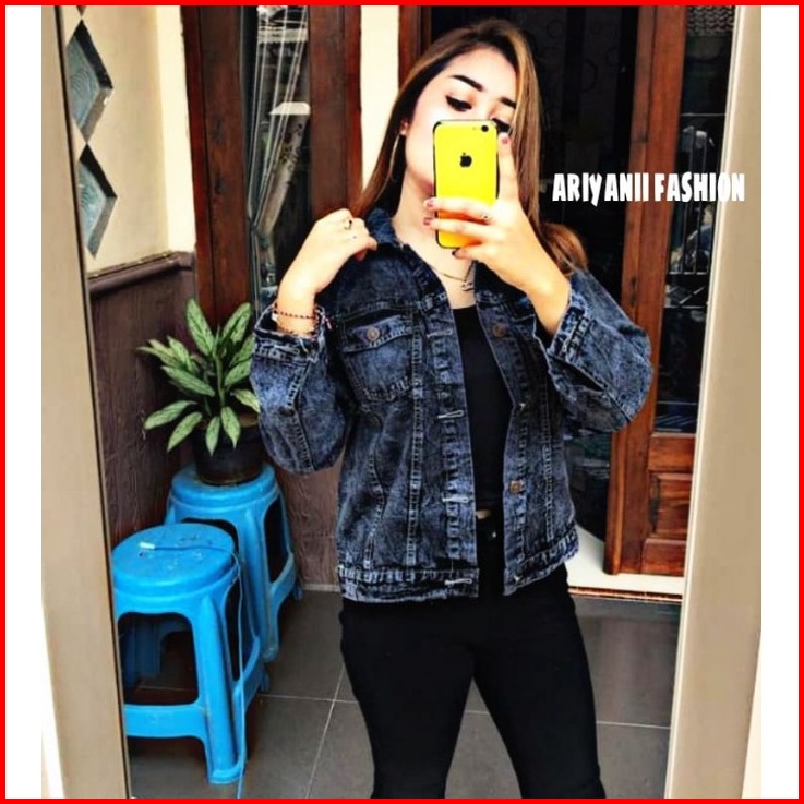 Arn - Jaket Wanita Jeans Oversize Pita Jacket Denim Jins Murah Biondy Snow Cewek Kekinian Emblem 3d Korean Model Gambar
